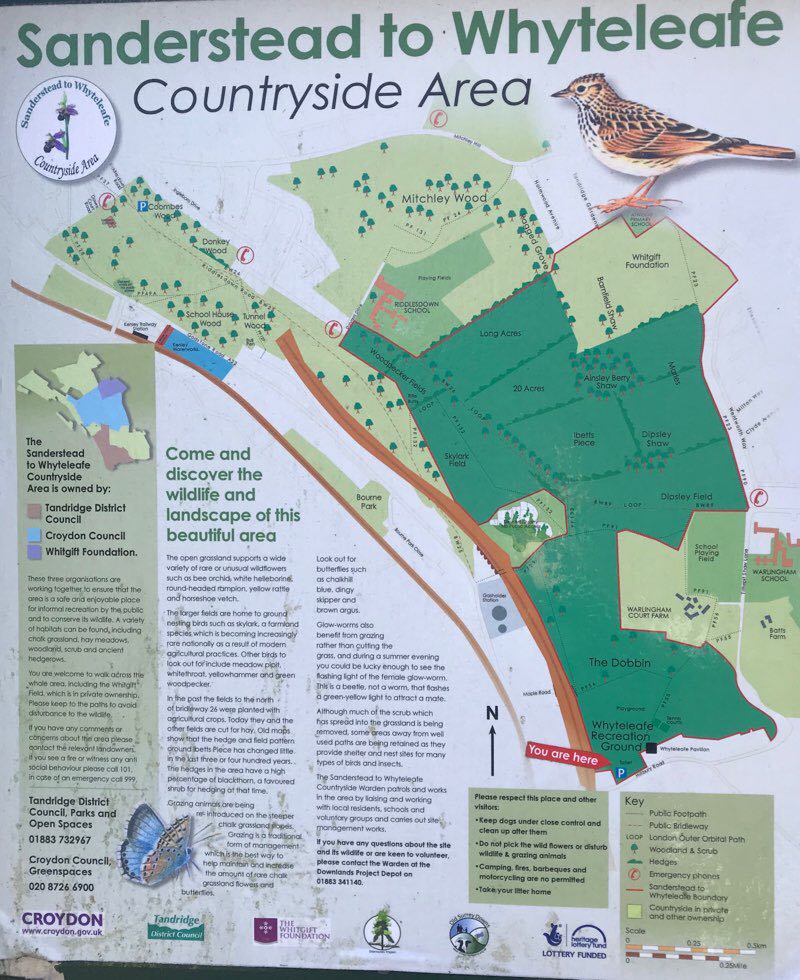 Here is a Footpath app route for SWCA. Also on AllTrails. This route guides you around the fields and passes the pond and takes a meander through the Ainsley Berry Shaw woodland. Technically this walk starts and ends in the London Borough of Croydon, but you cross the border into Surrey about a quarter of the way through for a little bit of the route – blink and you’ll miss it though!
