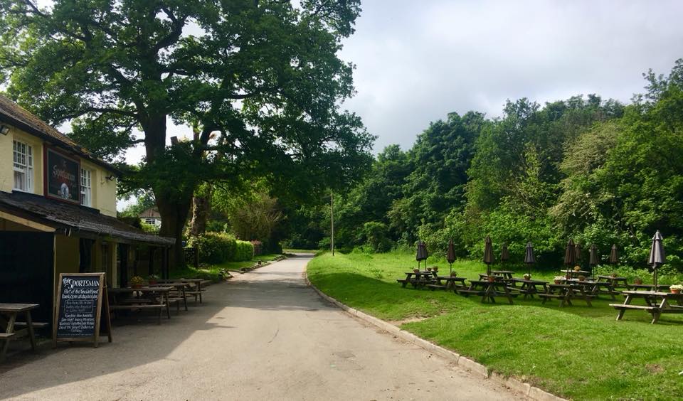 Turn left and this footpath brings you down to the lane. At the lane, go left and walk along to the Sportsman pub.