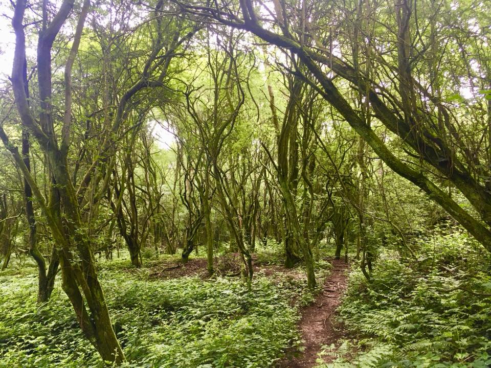You should see a little path heading into the woods – go through the gap and follow this path as it winds down and around the trees. It’s not on any maps and you’re really following your nose with it but there aren’t any paths coming off it so you should be ok!
