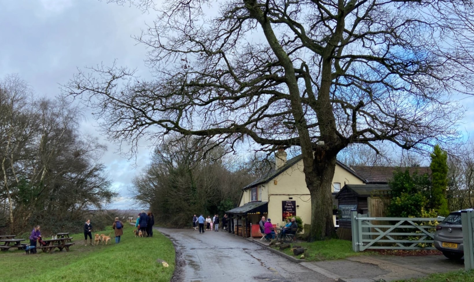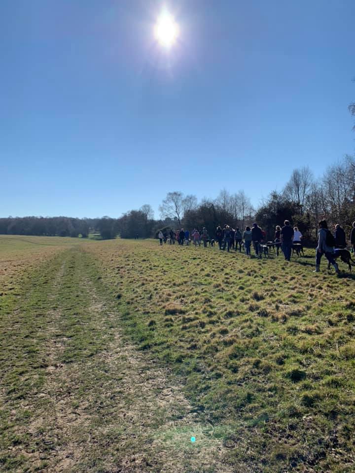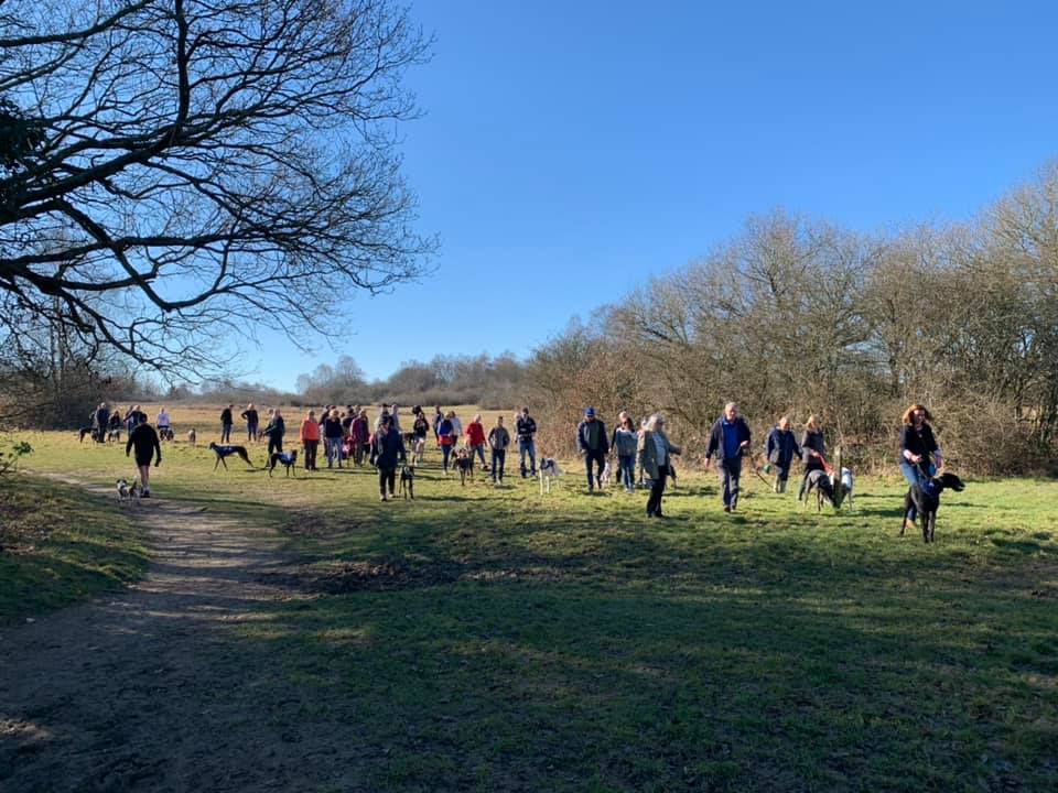 Mogador is a tiny hamlet adjacent to Banstead Heath and the first place that SSWG walked as a group. Before the group was formed, this was where Dave Hall used to host the Great Global Greyhound Walk (GGGW), fundraising for WGW. Dave handed organising GGGW to SSWG after the group was formed and we have brought the GGGW here for a number of years (apart from 2021 at Wimbledon Common.)