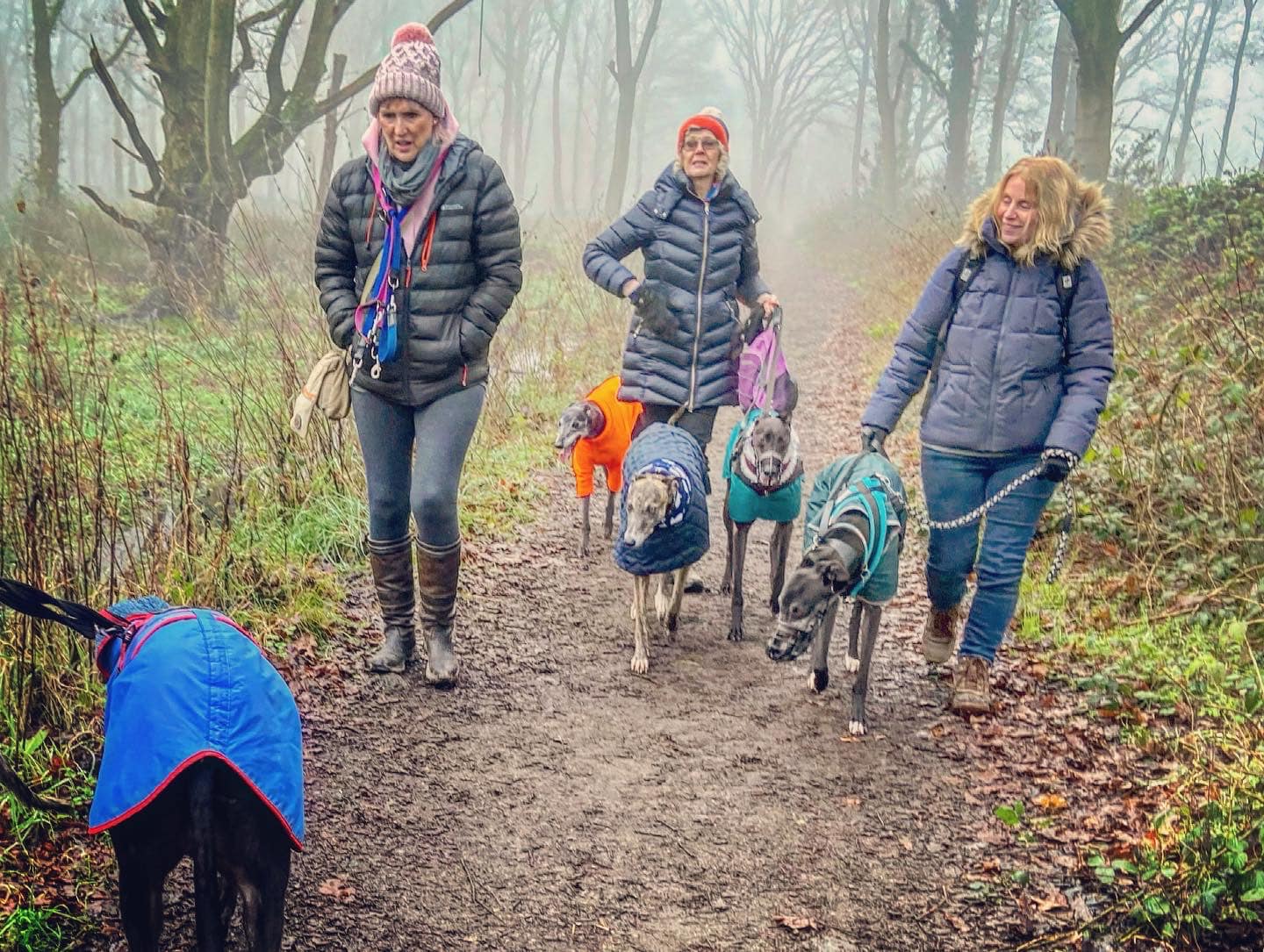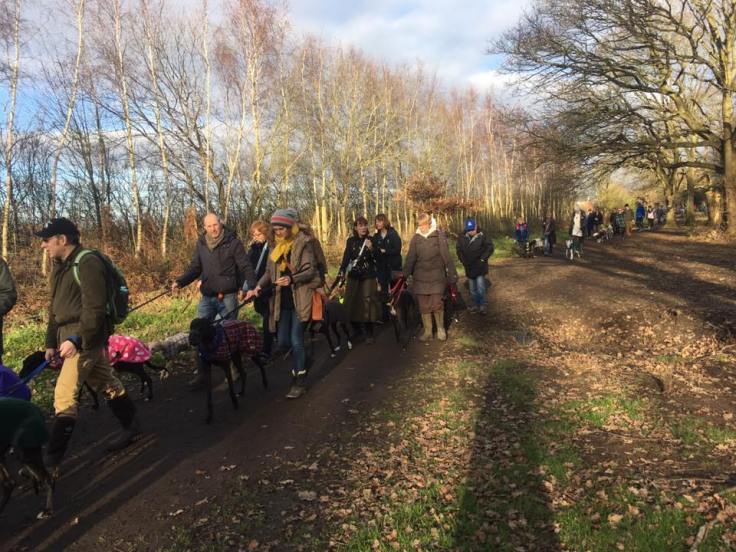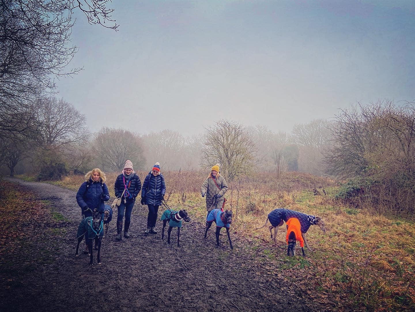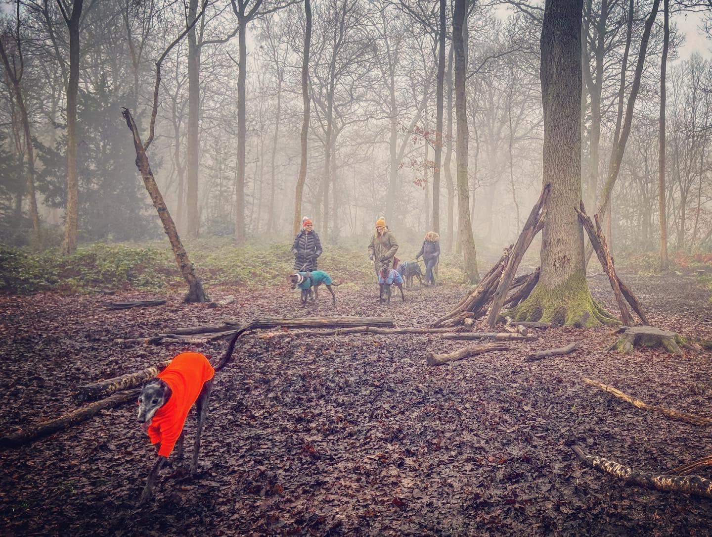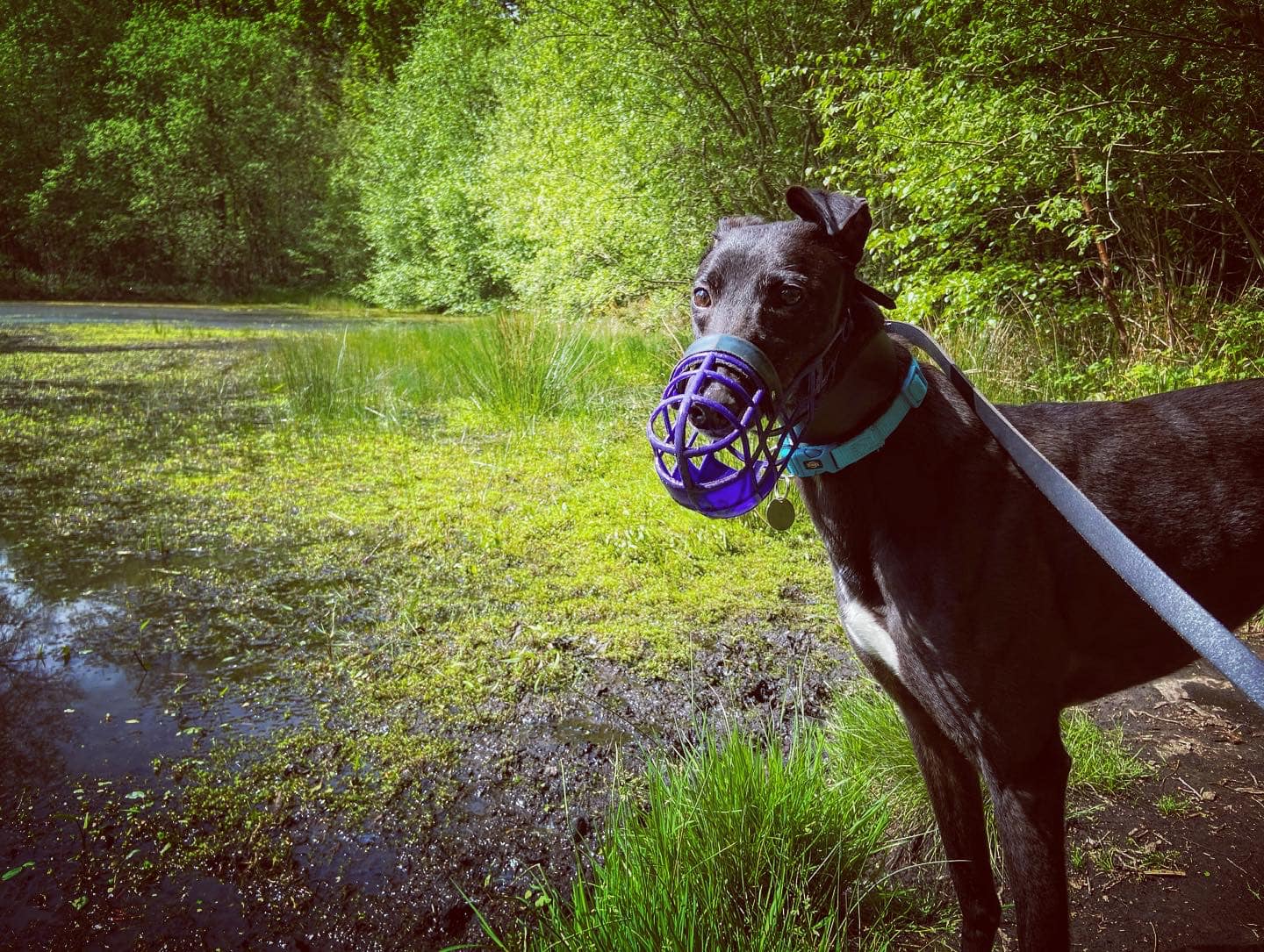 Keep your dogs on lead for this part of the walk as you want to take the path all the way to the roadside. When you reach it, one path over planks goes to the road but you want to take the other one, which also goes over planks but diagonally to the right. Walk a few more paces and then turn right to head away from the road and into the woods.
