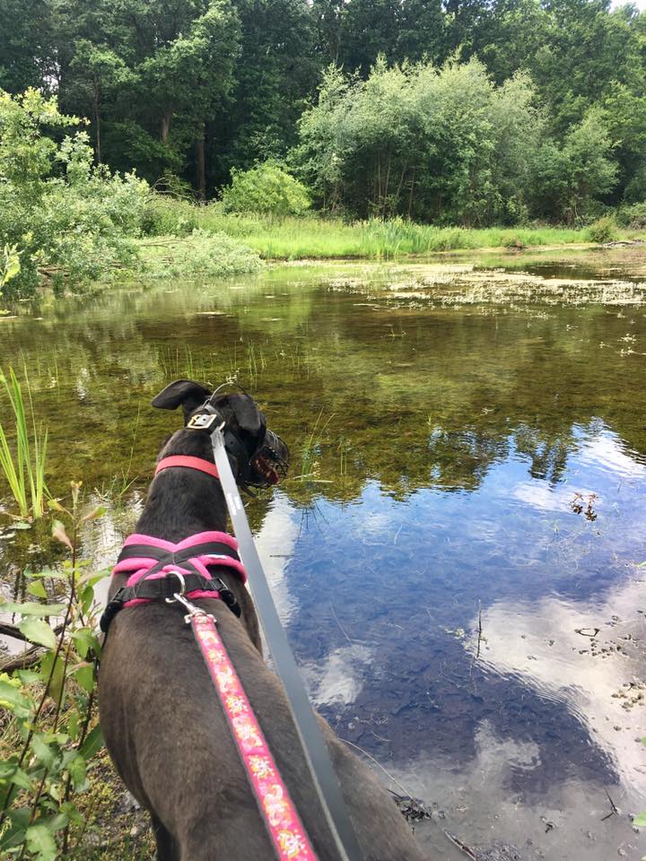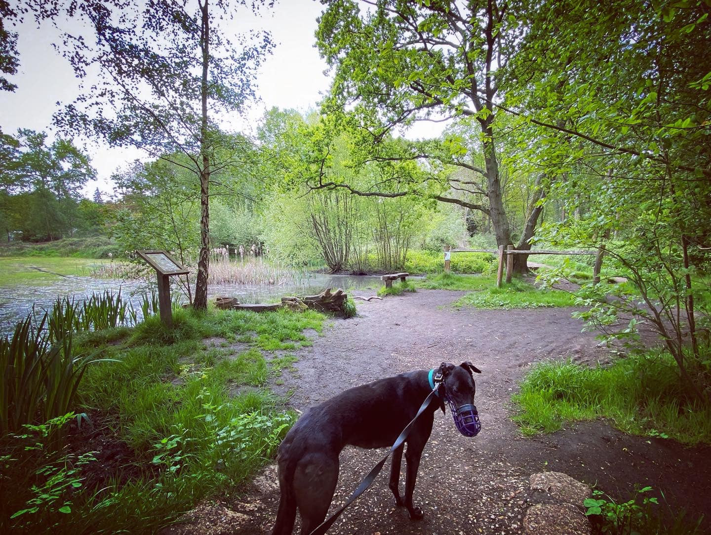 Here is a Footpath app route for West End Common starting at the Winterdown Road car park. Also on AllTrails. This route takes you around ponds, through woodland and up the hill, where it then skirts the ridge known as The Ledges, before heading down to the River Mole, along the riverbank, up steps to the top of the hill again and back to the car park.