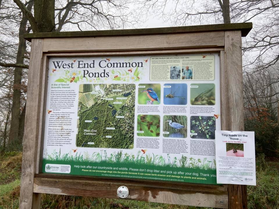 There are a couple of car parks for West End Common – Winterdown Road car park, just along from Garsons Garden Centre, and West End Lane car park on the lane towards National Trust Claremont Garden.