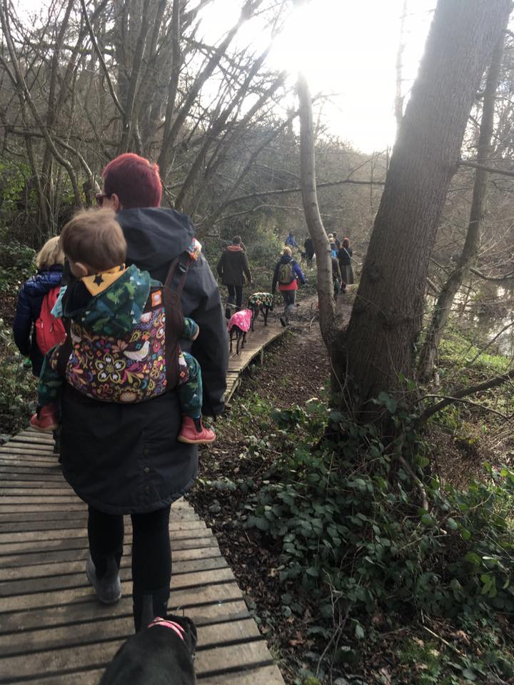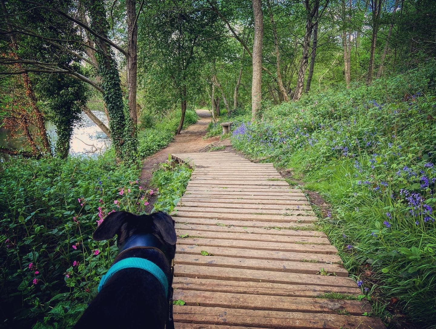 When you get to the river, turn right and walk along its bank. This is a long stretch that is often muddy in the colder, wetter months and goes over a number of boardwalks. These can be slippery and one of them is missing some slats so take good care.