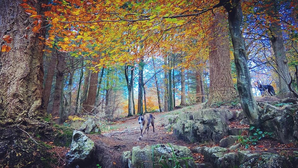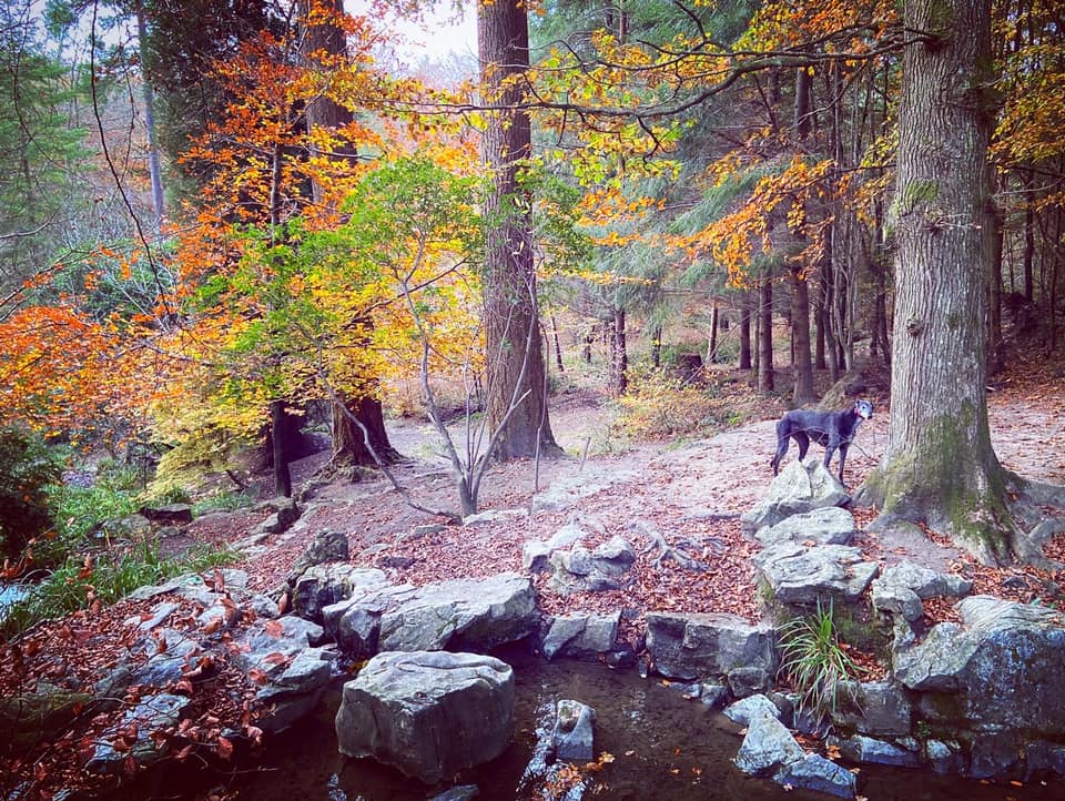 Here is a Footpath app route for Chelwood Vachery. Also on my AllTrails. My walk is similar to this one produced by the Conservators and Friends of Ashdown Forest. I was first introduced to it by the West Sussex Greyhound Walking Group. It’s a lovely walk, which includes the lakes, Folly Bridge and stepping stones, but (in my humble opinion), it misses out the very best bits of the Forest Garden – the little stream traversing down the hillside with its gorge, waterfalls and rock pools – so my route goes via those. This walk features quite varied landscapes – you’ll experience lowland heath, woods, and ponds and streams. You’ll also walk part way along a former WWII airstrip.