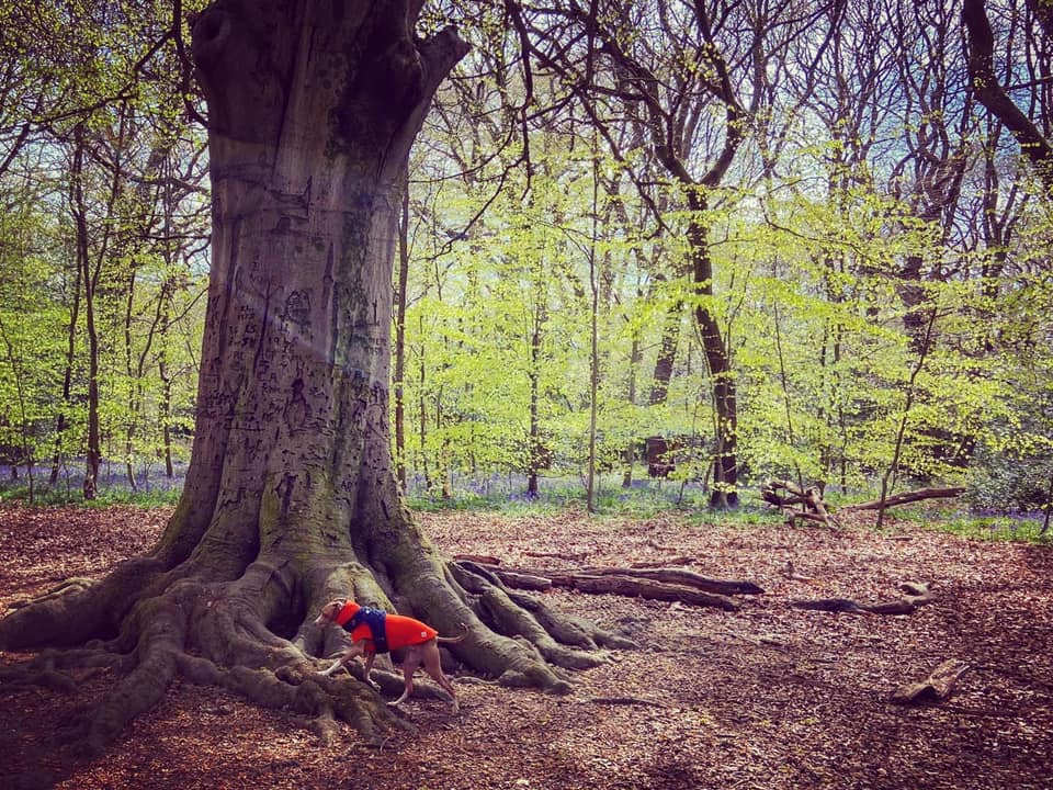 Terrain: Grassy slopes and slopes through the wood. Nothing too arduous – I have tried every which way into and out of this wood, and this is the least awful!