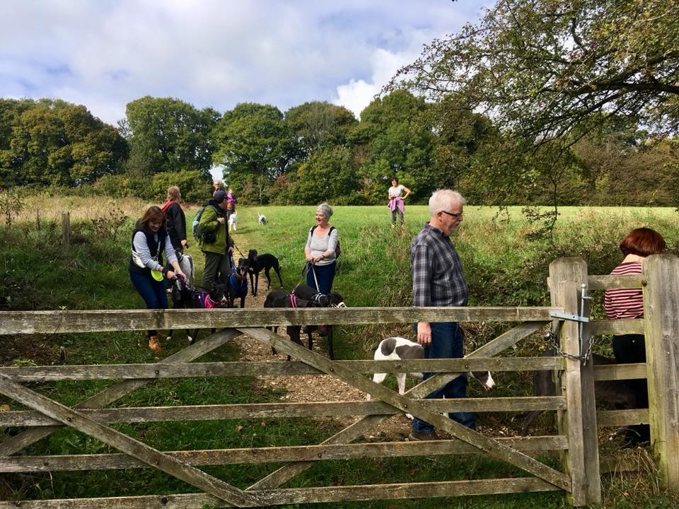 Go through the gate at the back-right-hand side of the Ramblers Rest pub’s rear car park and turn right to walk into the fields. There’s a poo bin on your right at the field corner. The path forks immediately and it doesn’t actually matter which you take – the one to the left heads up a gentle slope, the one to the right goes along the field edge and is close to the road. If your dog is off-lead, I’d take the left one. Both paths head through a hedge boundary into another field and they come together at the end of this second field, where you pass through the first of the six kissing gates along this route.
