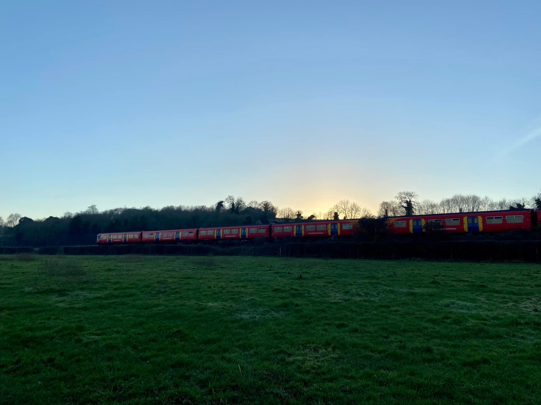 At the T junction, turn left onto the footpath that goes the side of the field and follow it round the corner to the right. Go through the metal kissing gate and take either path across the wide field. During the winter, when the vegetation has died back a bit, I prefer to take the smaller path that heads to the left as it goes alongside the River Mole. In the summer, this can be overgrown so I the go straight ahead across the field. It doesn’t matter as all the paths across this field come together at the end of it anyway. The South Western Railway train line runs along the right-hand side above you.