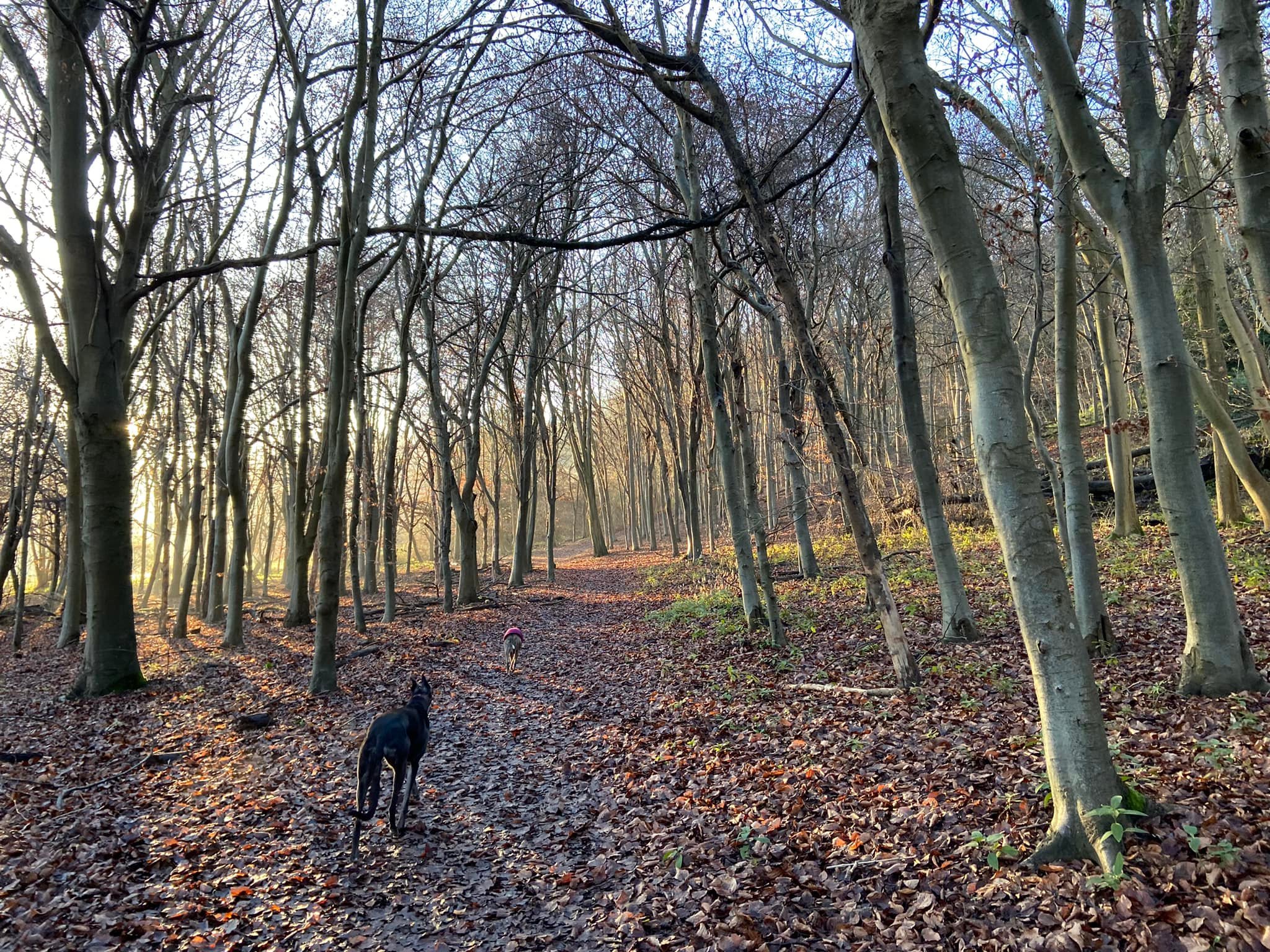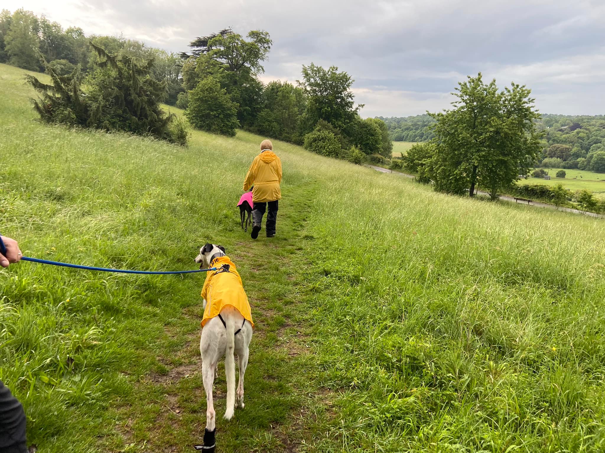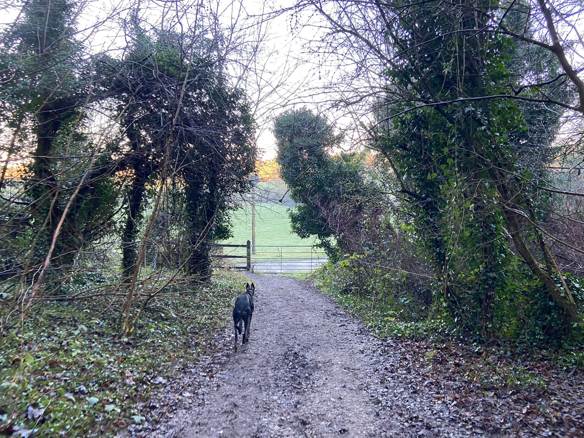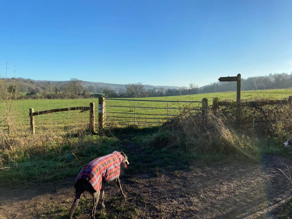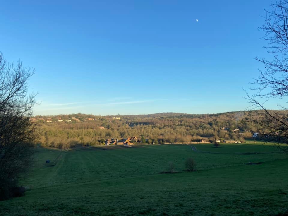 Terrain: Grassy meadow, woodland hillside, quiet lanes. The uphill slope is gentle considering how steep some parts of Norbury Park can be. A few steps to navigate.