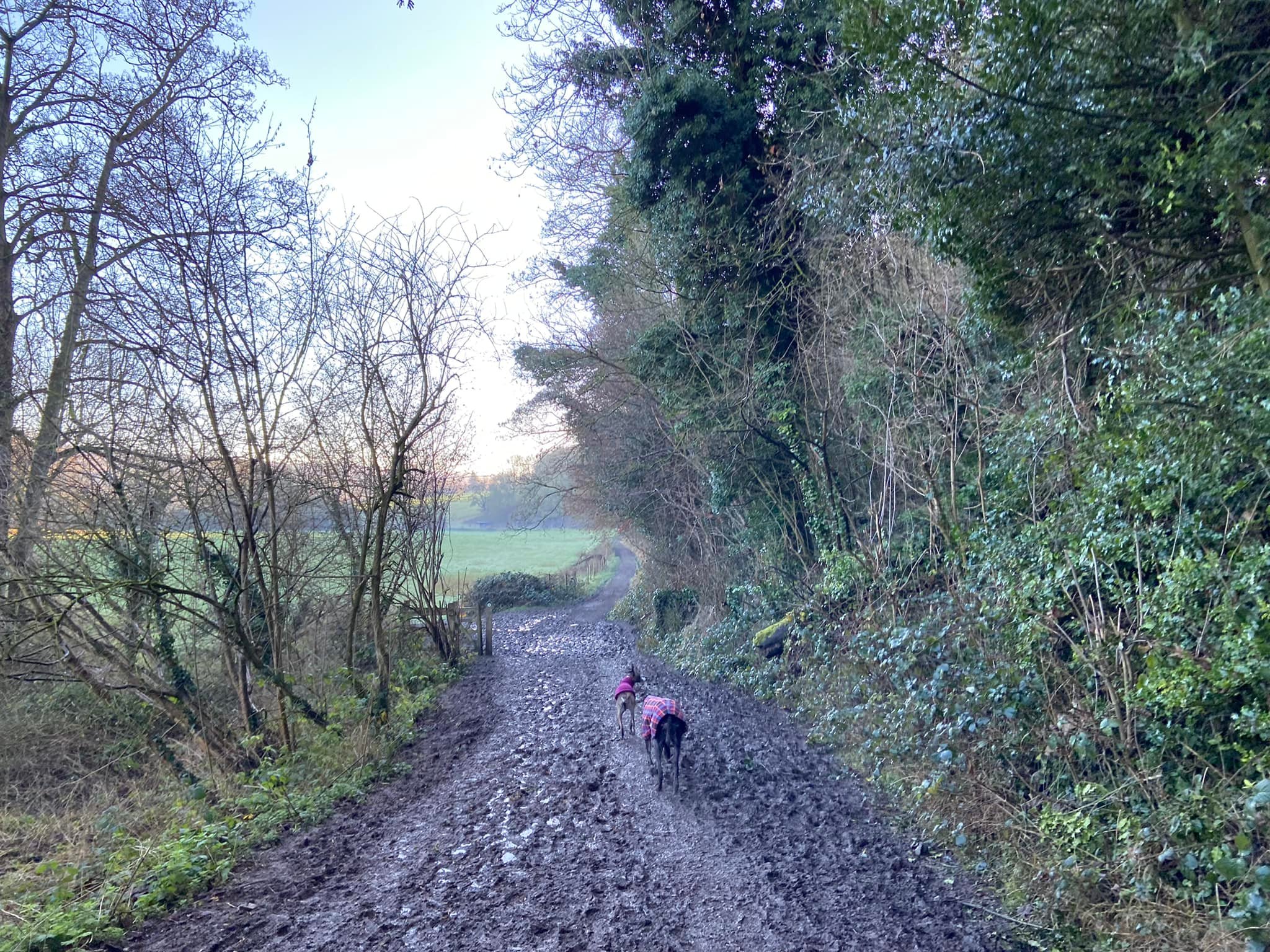 As you come to the far end of the field, the land will start to rise and you’ll be on a wide mud track. Pass through the gate – the vehicle gate is usually open, but if it is not, use the kissing gate next to it. Stay on the track all the way to the end of the field and then turn left. Follow the track through enclosures that usually house cattle and horses and pass a small block of stables on the right.