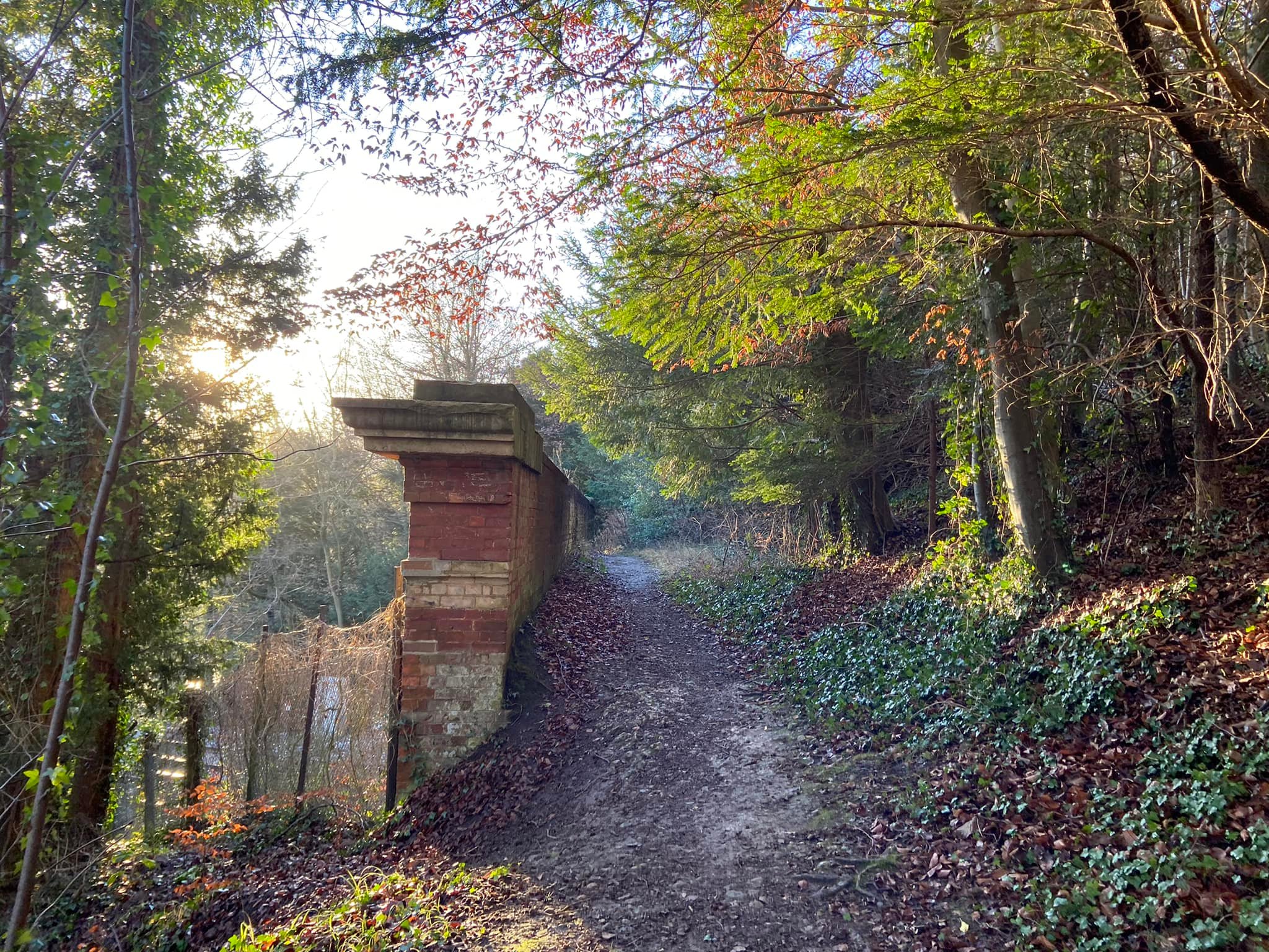 This is a long, steady but gentle incline up the hillside through the woods. You’ll pass a solitary Yew tree on the right with a little wooden post in front of it with a quote from a publication describing Norbury Park.