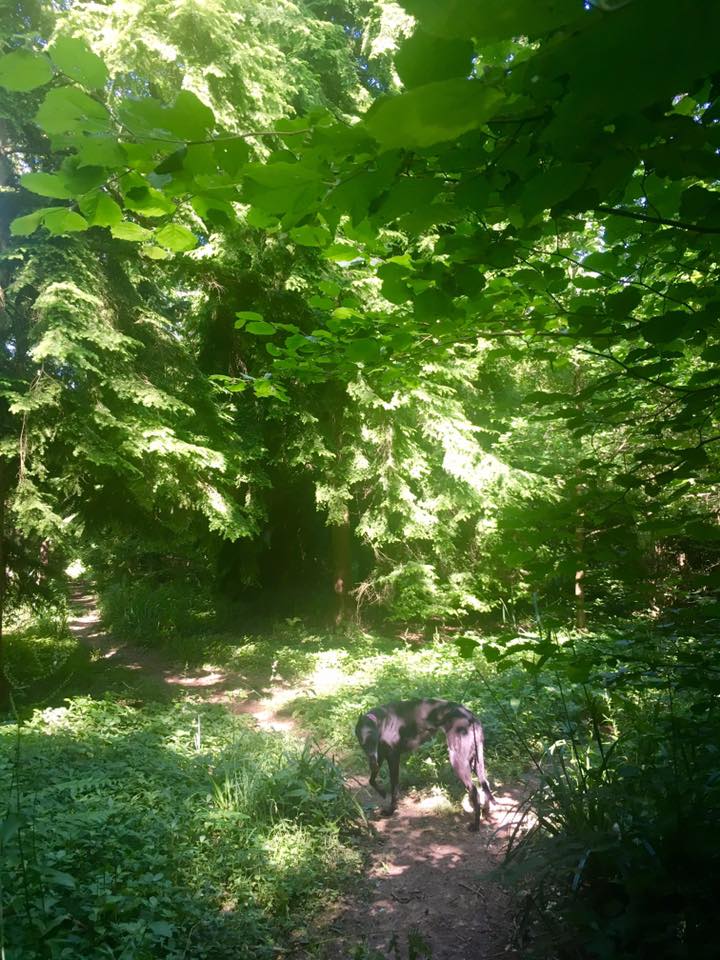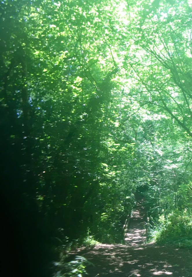 Take the little path that comes off to the right not long after you’ve cleared the lake, then turn right at the end of this and pass a sign for Vann Lake (on your left). Cross the sleeper bridge and go up the steps. Ignore the small path that comes off to the right (unless you particularly want to walk down to the lake edge, where there is a big tree growing over the water with a precarious looking rope swing that I’m not brave enough to try! If you do take a look down here – and it isn’t far at all – just retrace your steps back to the path when you’re done).