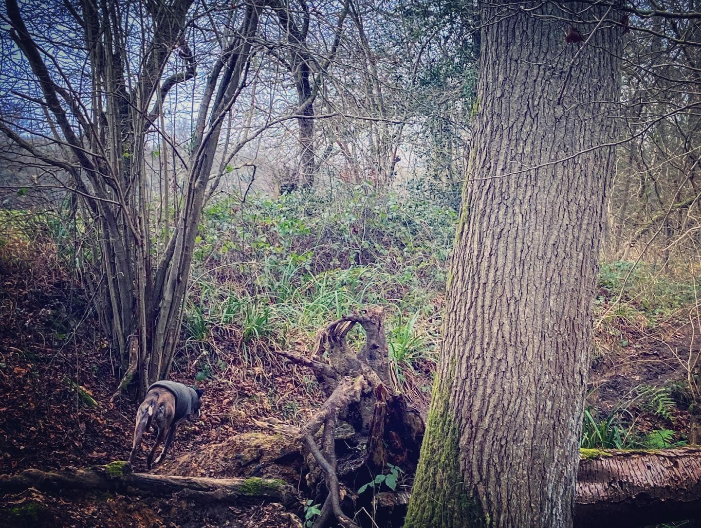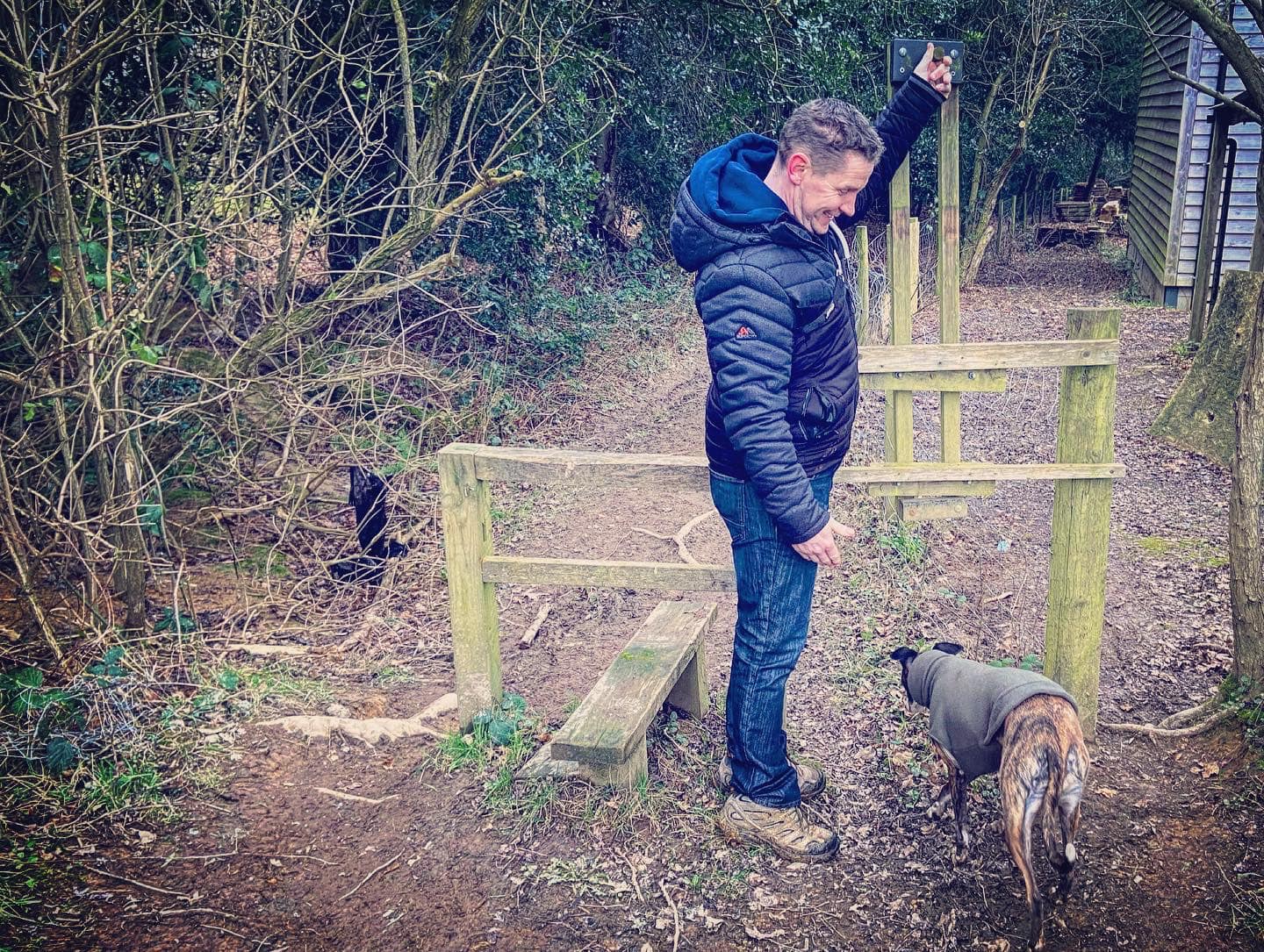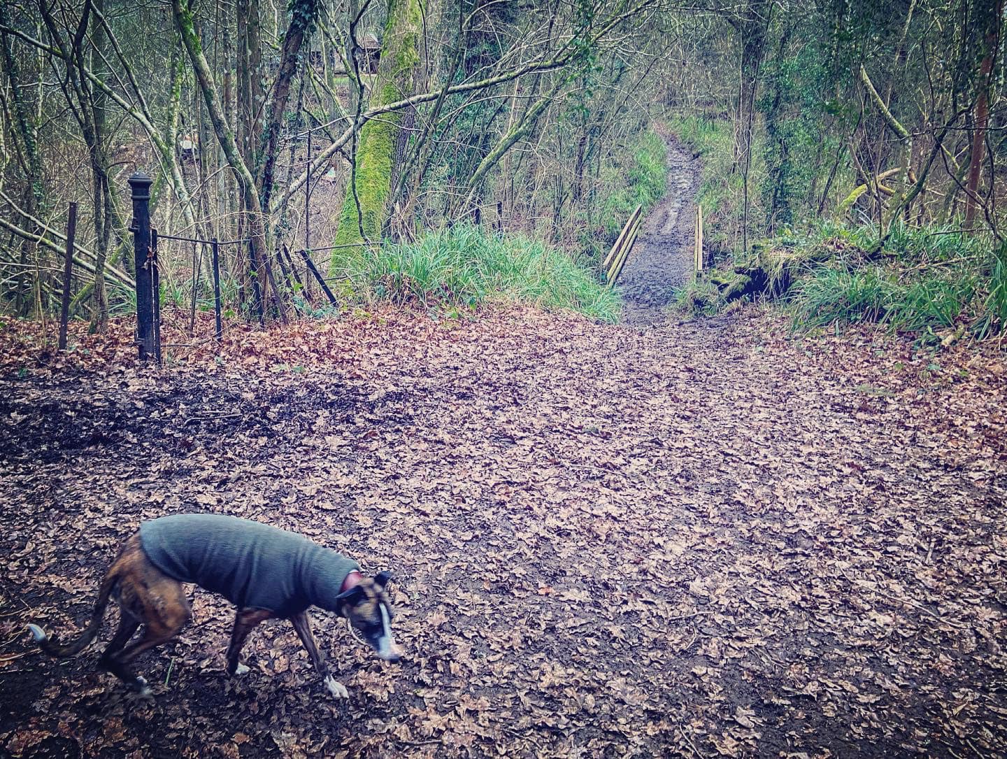 Take care going around the fallen tree. Pass another sign for Vann Lake (on your right) and then a bizarre little stretch of low wall which runs a very short way along the right hand side of the path. Take care going over another fallen tree. The path goes very close to the lake edge for a bit – mind your footing on the tree roots of a few trees that it goes over. The path will rise up at a fallen tree (on the right) and there is a fork. It doesn’t matter which fork you take here – the one down to the right is muddier and has tree roots to navigate and the one to the left stays high but then has a short but steep dip down. They converge at a little wooden bridge. Cross the bridge and go up the steps – it can be extremely muddy here.