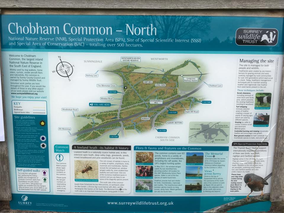 Here is a Footpath app route for the northerly area of Chobham Common, above the M3. Also on AllTrails. It’s a fairly simple route – very hard to go wrong as you’re on the main path that circles this area for most of it. There’s a short detour off to see the Memorial Cross.