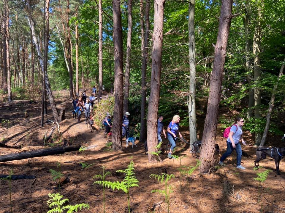 Here is a Footpath app route for Silvermere. Also on AllTrails. This walk takes you through the silver birch woodland that lies to the north-west of the M25 and A3, then you cross over the motorway (so not a walk for nervy hounds) and loop around Wisley Common. You come up past the pond and Surrey Wildlife Trust office – with this one stretch of the walk appearing also on the Wisley Common walk on this site. Then you head back to the footbridge over the motorway and take a small path through the woods and rhododendron bushes of Silvermere back to the start.