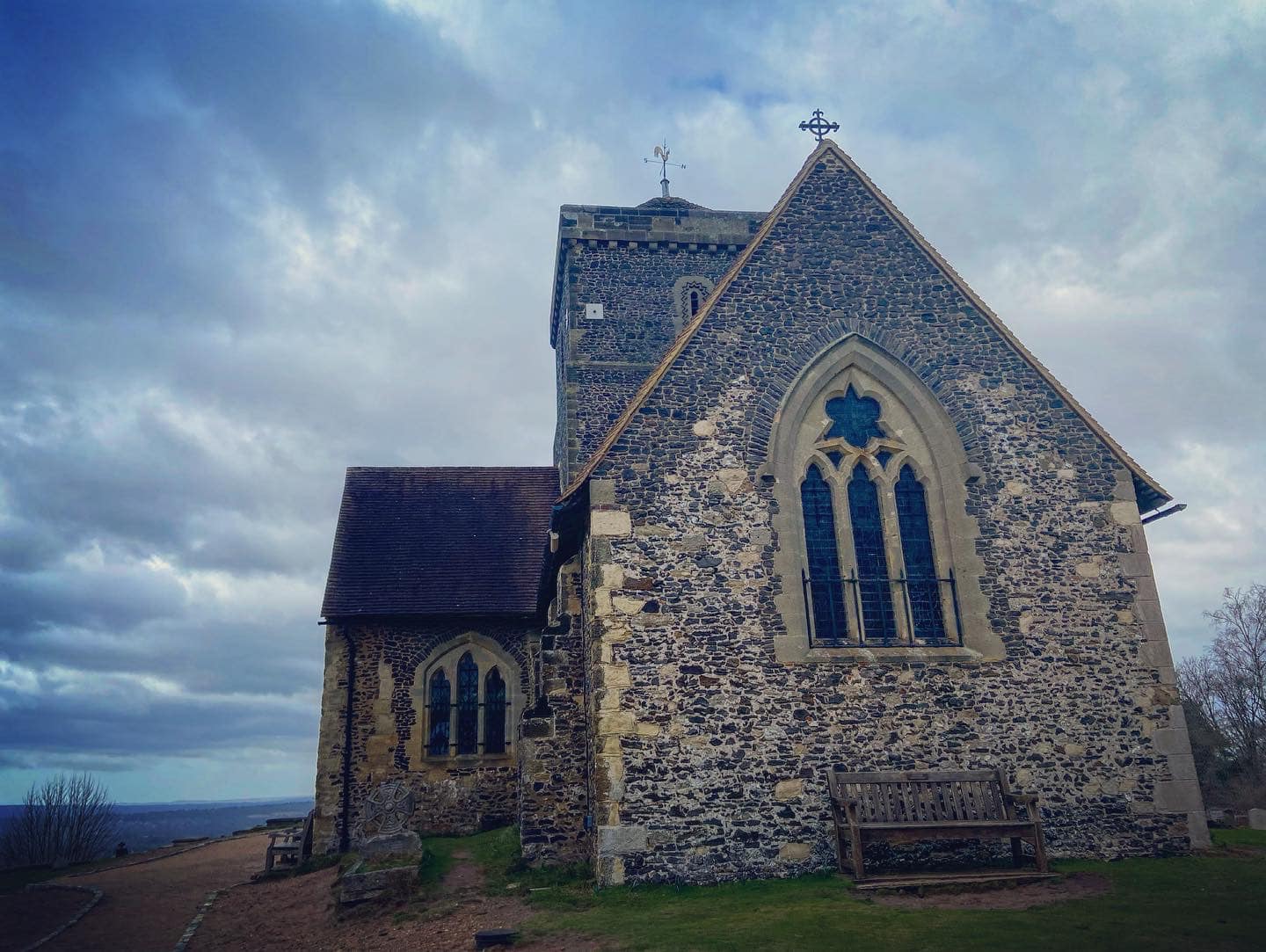 It is believed that human interest in this hill as a place of reverence dates back to the Stone Age, with archaeologists finding evidence of Neolithic (8,000 BC – 3,000 BC) flints and ancient earthworks. According to the Doomsday Book, a Saxon chapel was built on the summit but no trace of it has ever been found and we know that, by the early 13th century, a Norman church occupied the spot. Constructed between 1189 and 1204, it was dominated by a tall west tower, creating a landmark which would have been visible for miles around. Sadly, this fell into ruin following a series of huge explosions in 1745, with several accidental blasts in the gunpowder works tucked under the hill’s southern slopes causing the tower to crash to the ground. (Note – Chilworth Gunpowder Mills walk here.)