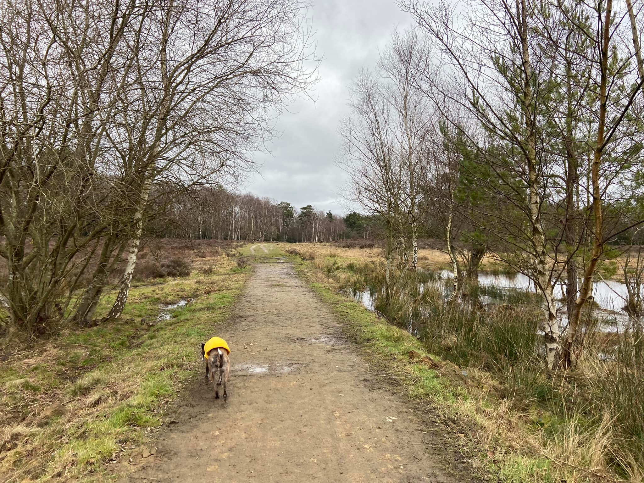 Terrain: Largely flat. Surface path through the grassland, dry mud path along the canal, and then mud paths to and around Sheets Heath, where you’ll have a real mix of wet versus dry underfoot. Some areas are springy and heathy and bone dry, other bits can be boggy and muddy in the colder months so decent walking shoes or boots/wellies are a good idea.