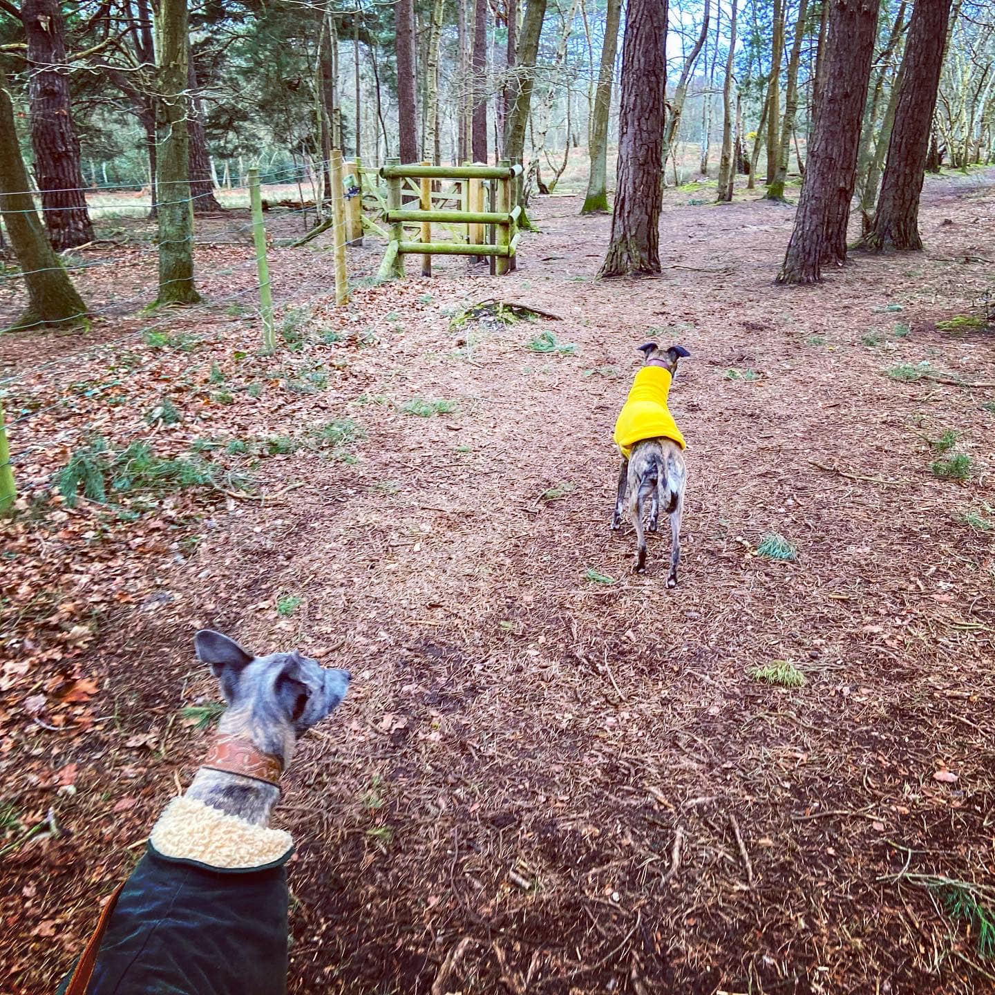 Just after you enter the tree line, you’ll come to a path crossing your way, turn right here. Pass a gate on the left.