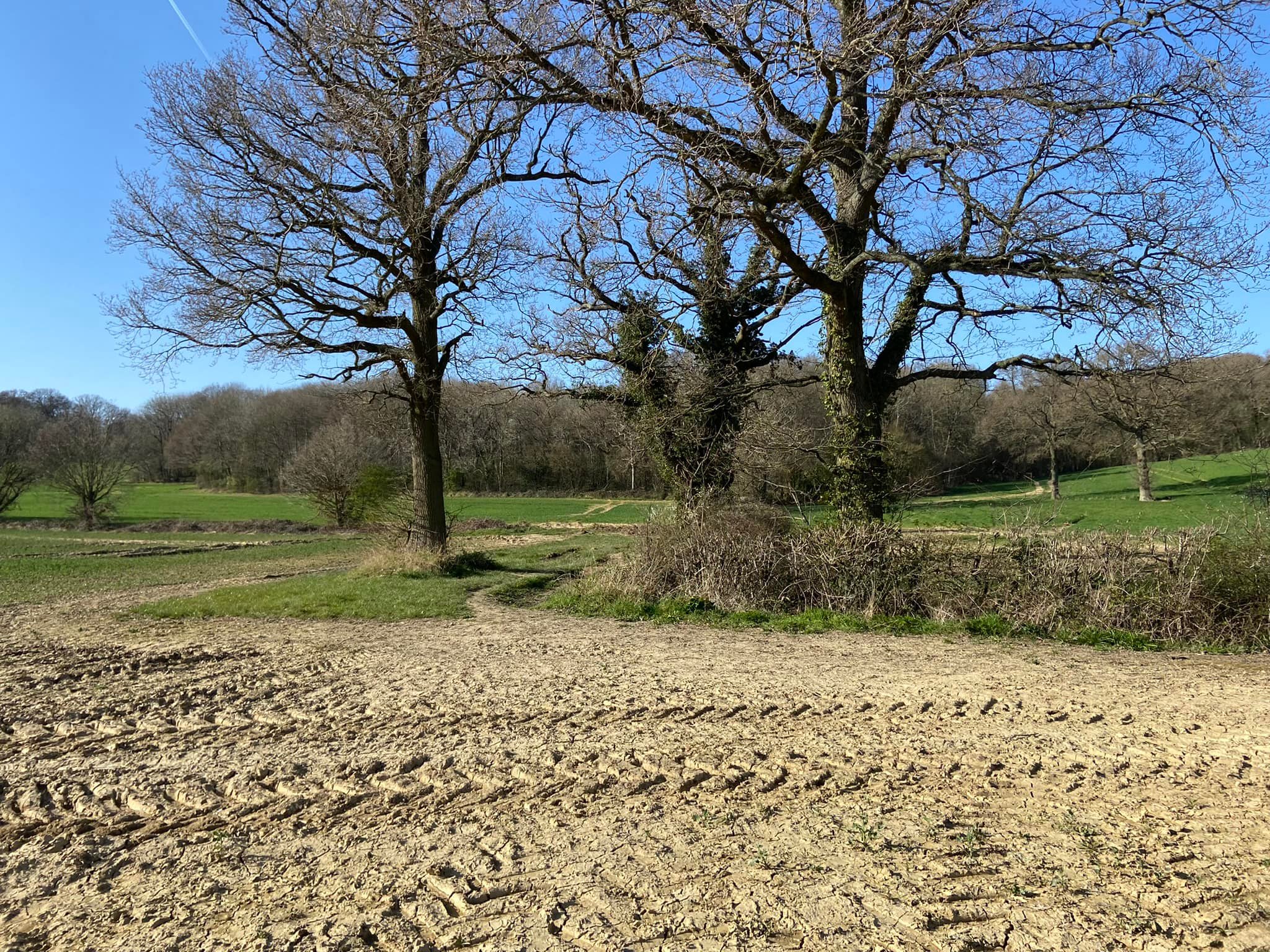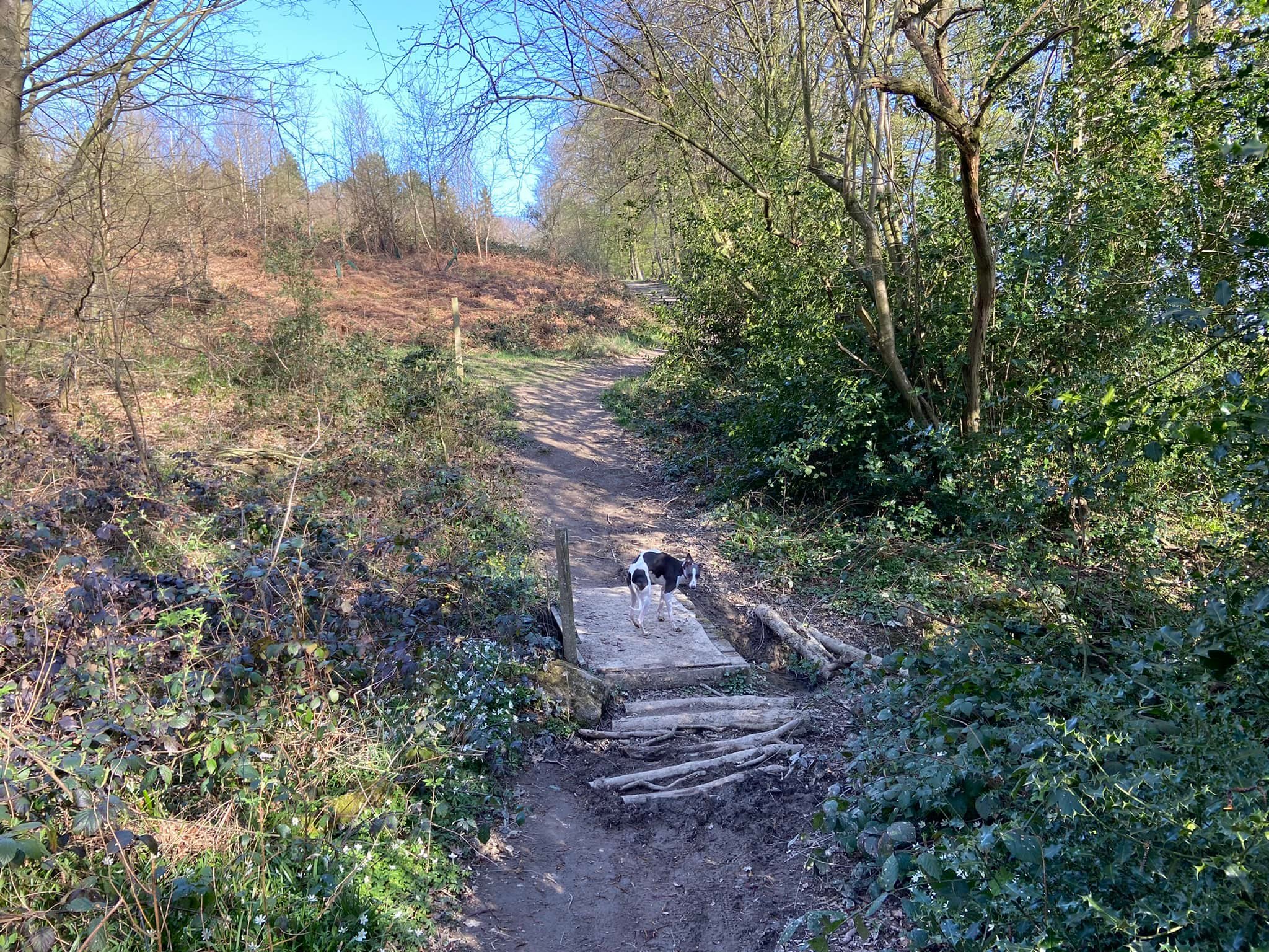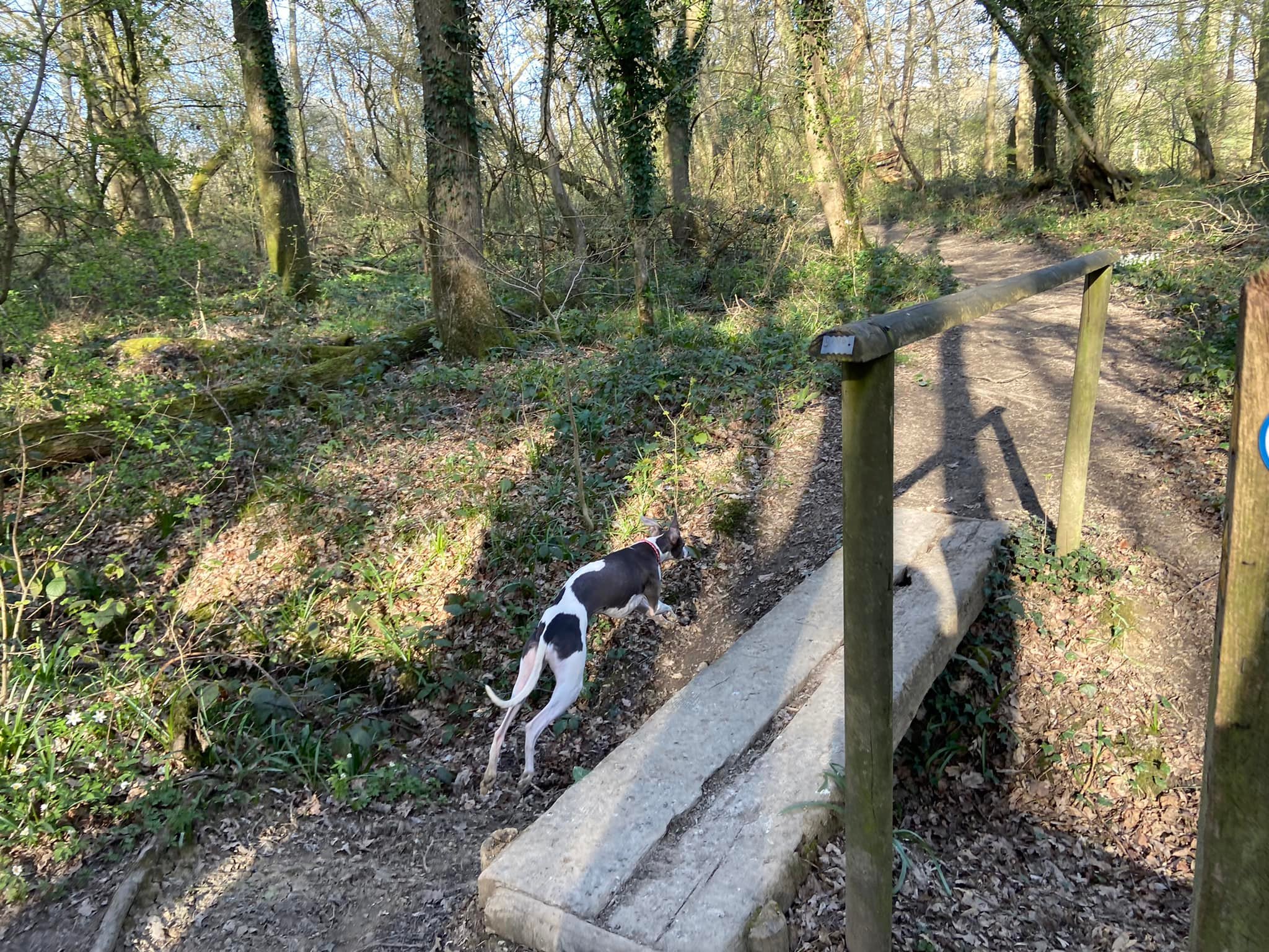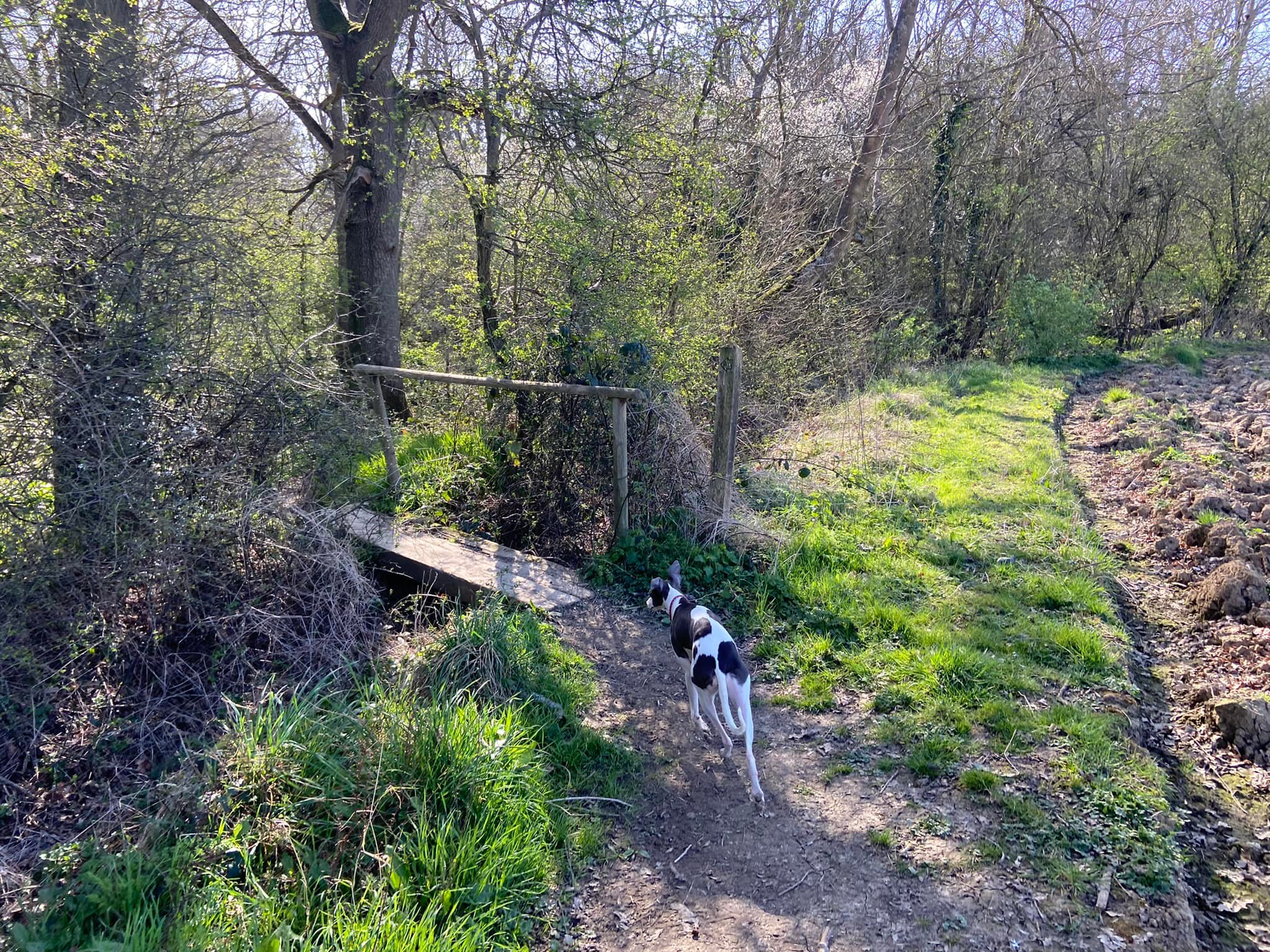 Terrain: Fields and woodland, all of which can be really muddy at certain times of year. A fair few slopes but nothing too step, some steps and a number of small bridges, all of which are sturdy. There is one kissing gate. Two crossings of the lane and a very short section along Wilmot’s Lane before it turns into a dirt track.