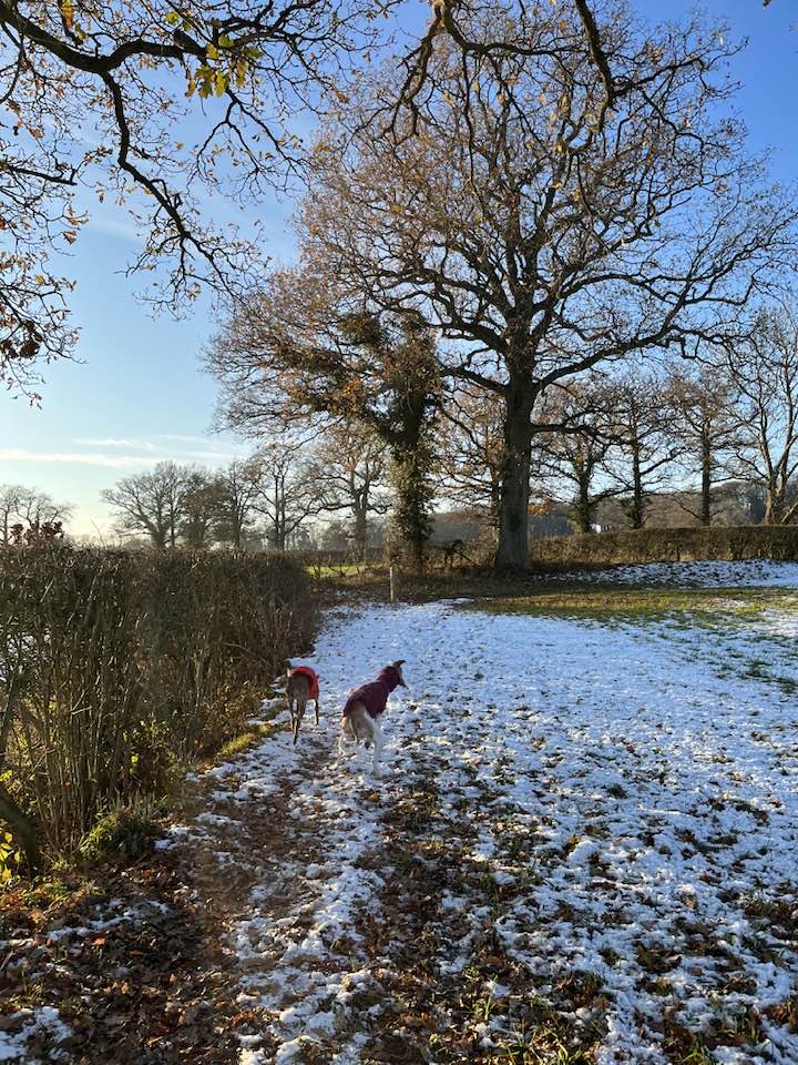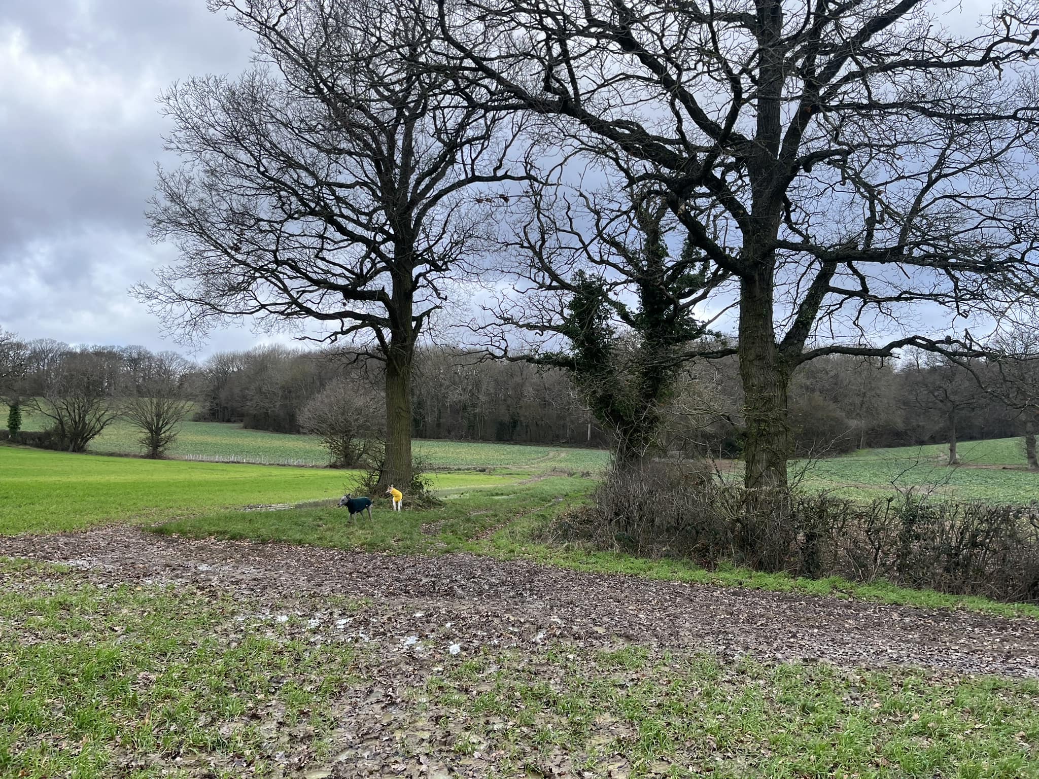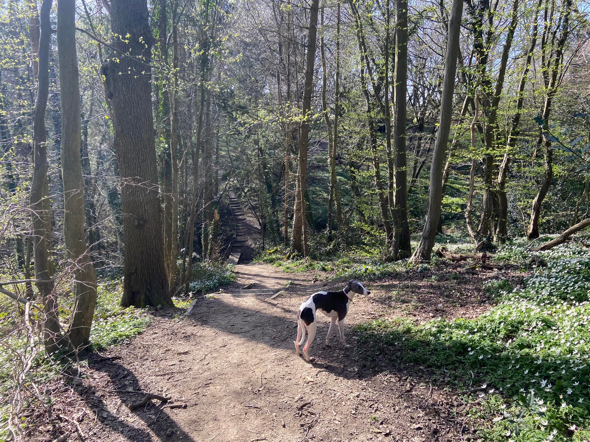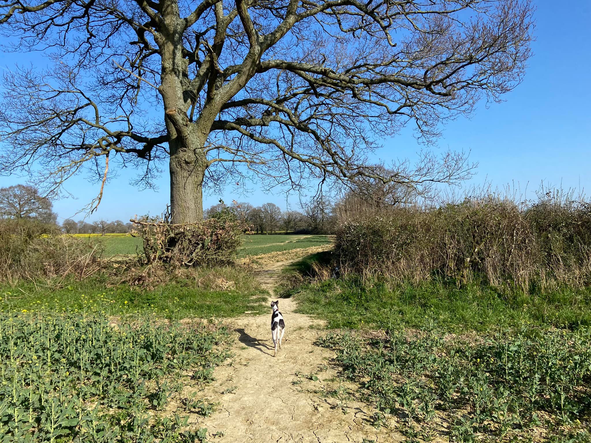 Terrain: Fields and woodland, all of which can be really muddy at certain times of year. A fair few slopes but nothing too step, some steps and a number of small bridges, all of which are sturdy. There is one kissing gate. Two crossings of the lane and a very short section along Wilmot’s Lane before it turns into a dirt track.