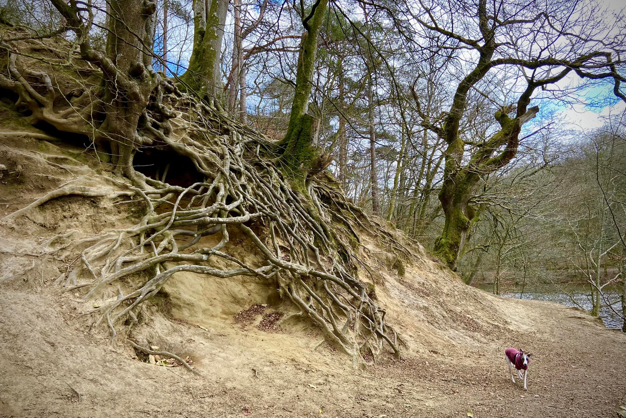 Waggoner’s Wells in Hampshire consists of three man-made ponds/lakes, which were created in the 17th century by the Hooke family of Bramshott. With evidence of ironmaking in the area, it’s believed they were originally intended as hammer ponds, which would have provided water to power machinery used to produce iron, but they appear never to have been used. It’s been suggested that they instead served as fish ponds. Apparently to this day, there are a variety of fish in them, including carp, roach and trout. Water birds such as kingfisher are attracted to the area and there are plenty of ducks on the ponds.
