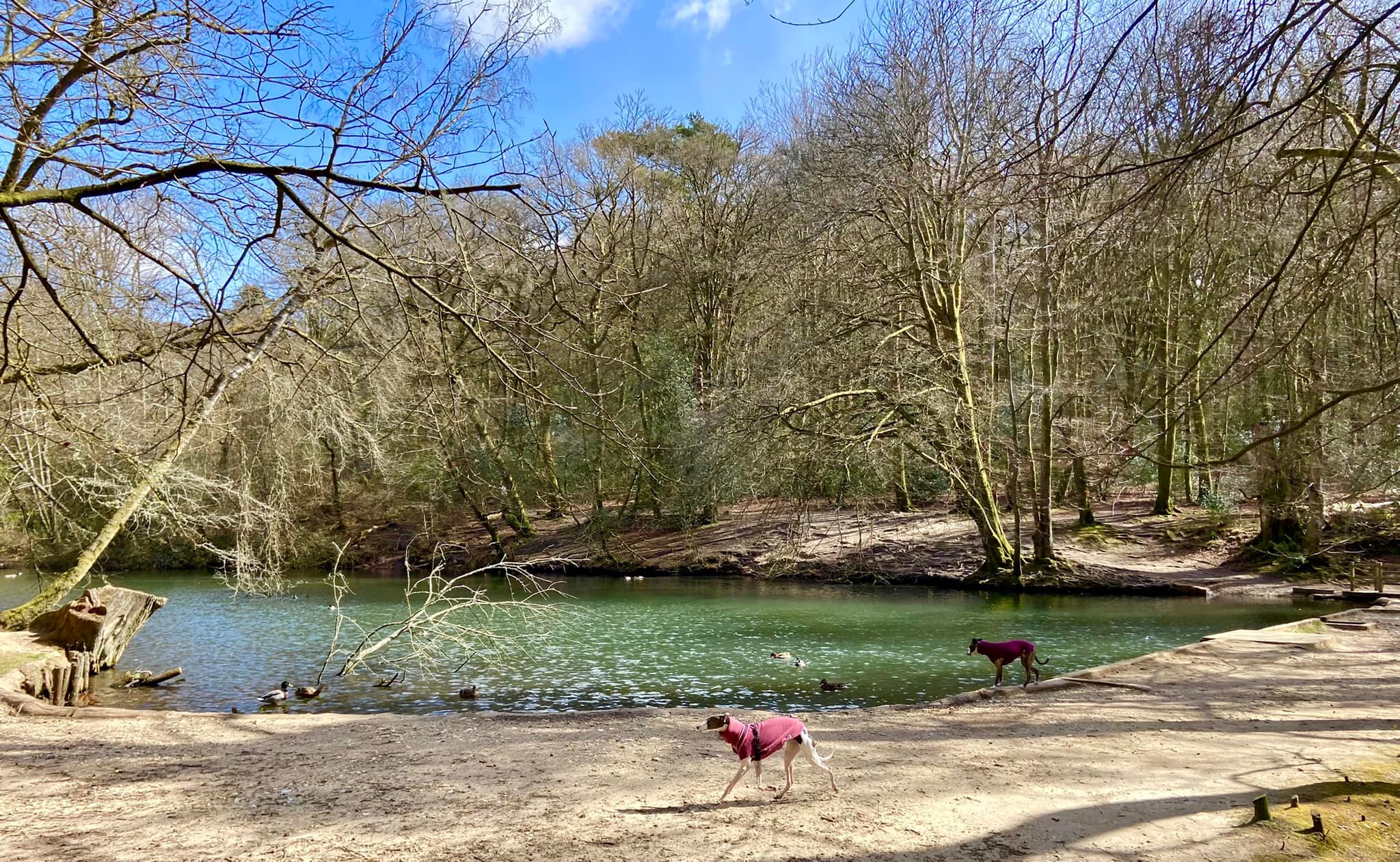 Terrain: Most of this walk is on quite dry compacted mud or springy woodland floor although the second loop that passes the boggier two ponds can be muddy in winter.