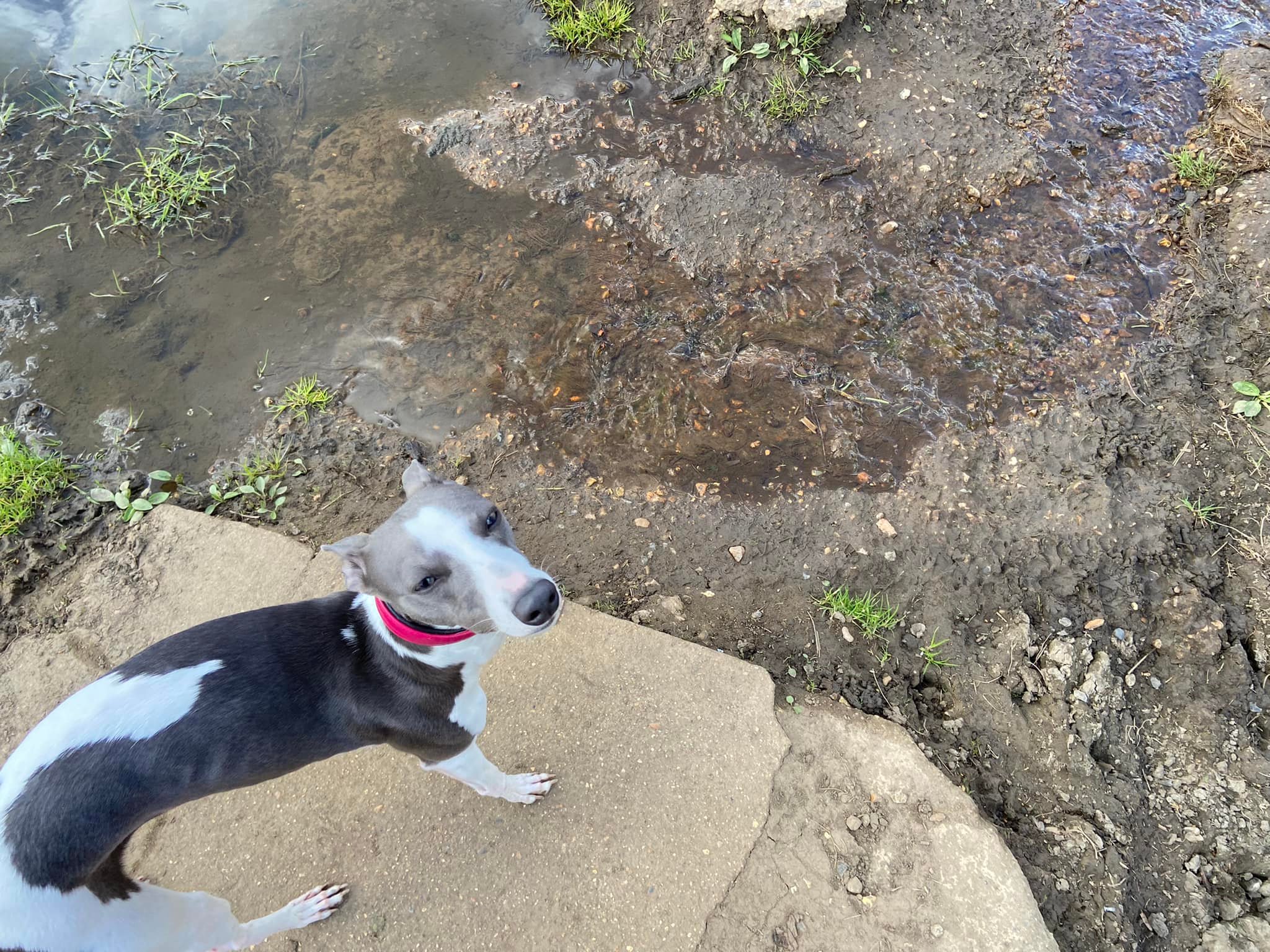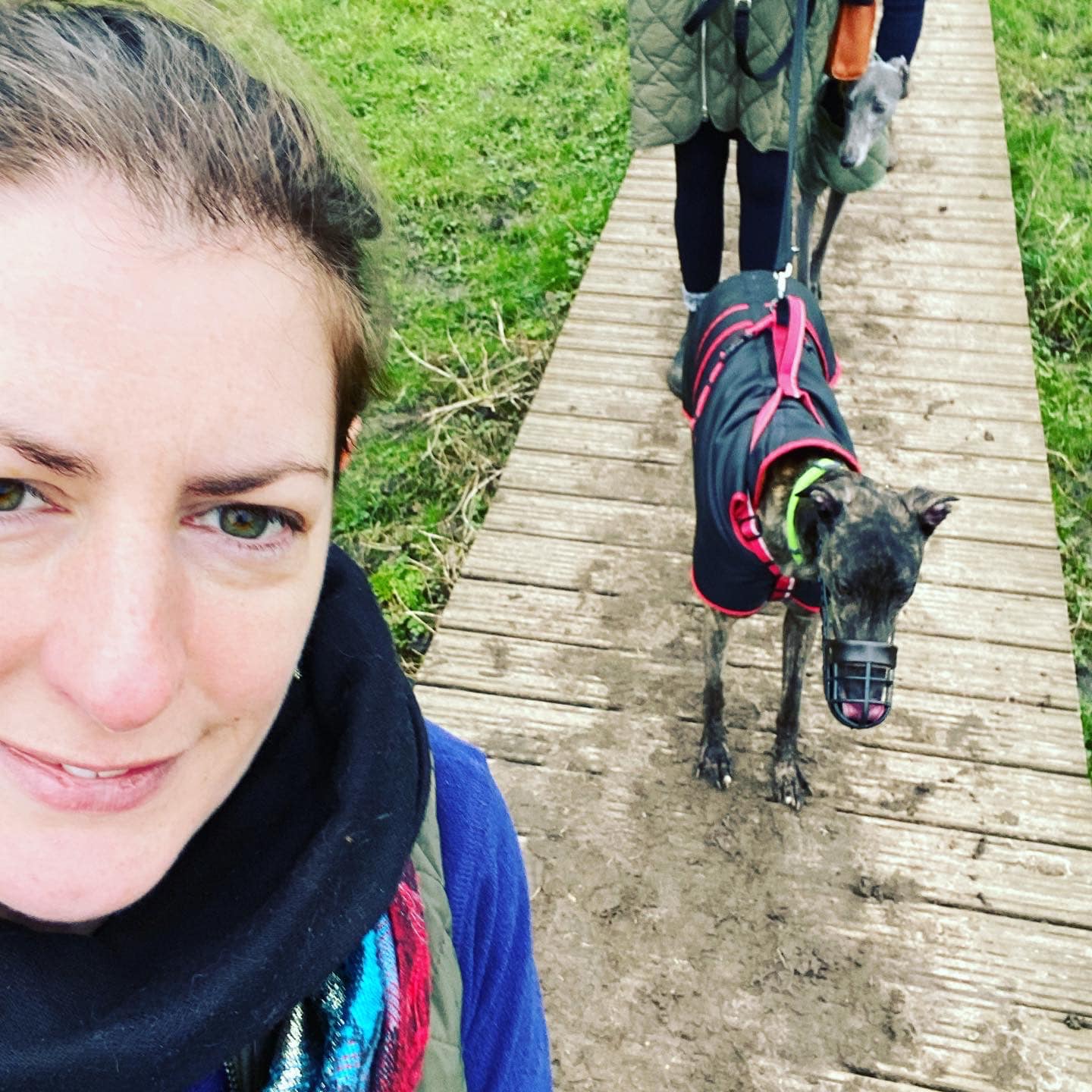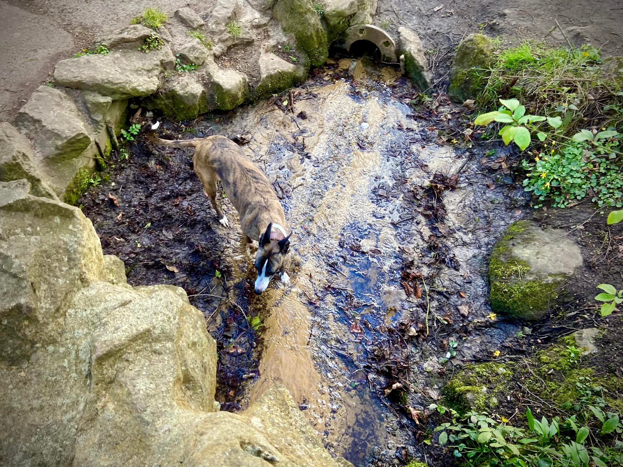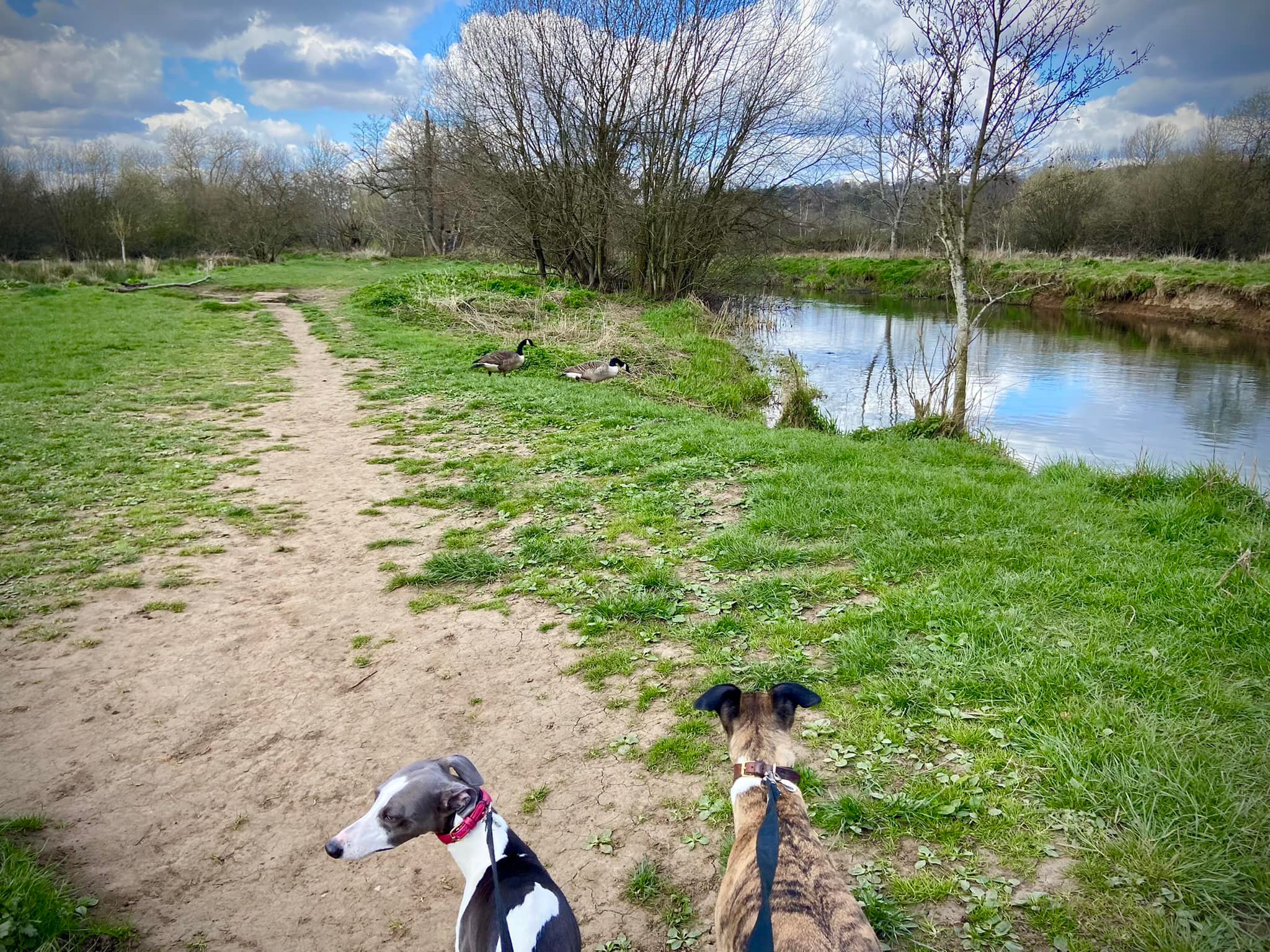 When you reach the rowing club, if your dog is off lead, put them back on for the next little bit. Cross the weir and head towards the road. Go over the footbridge over the canal right by the rowing club (marveling at the grooves for bicycles) and turn right on the other side.