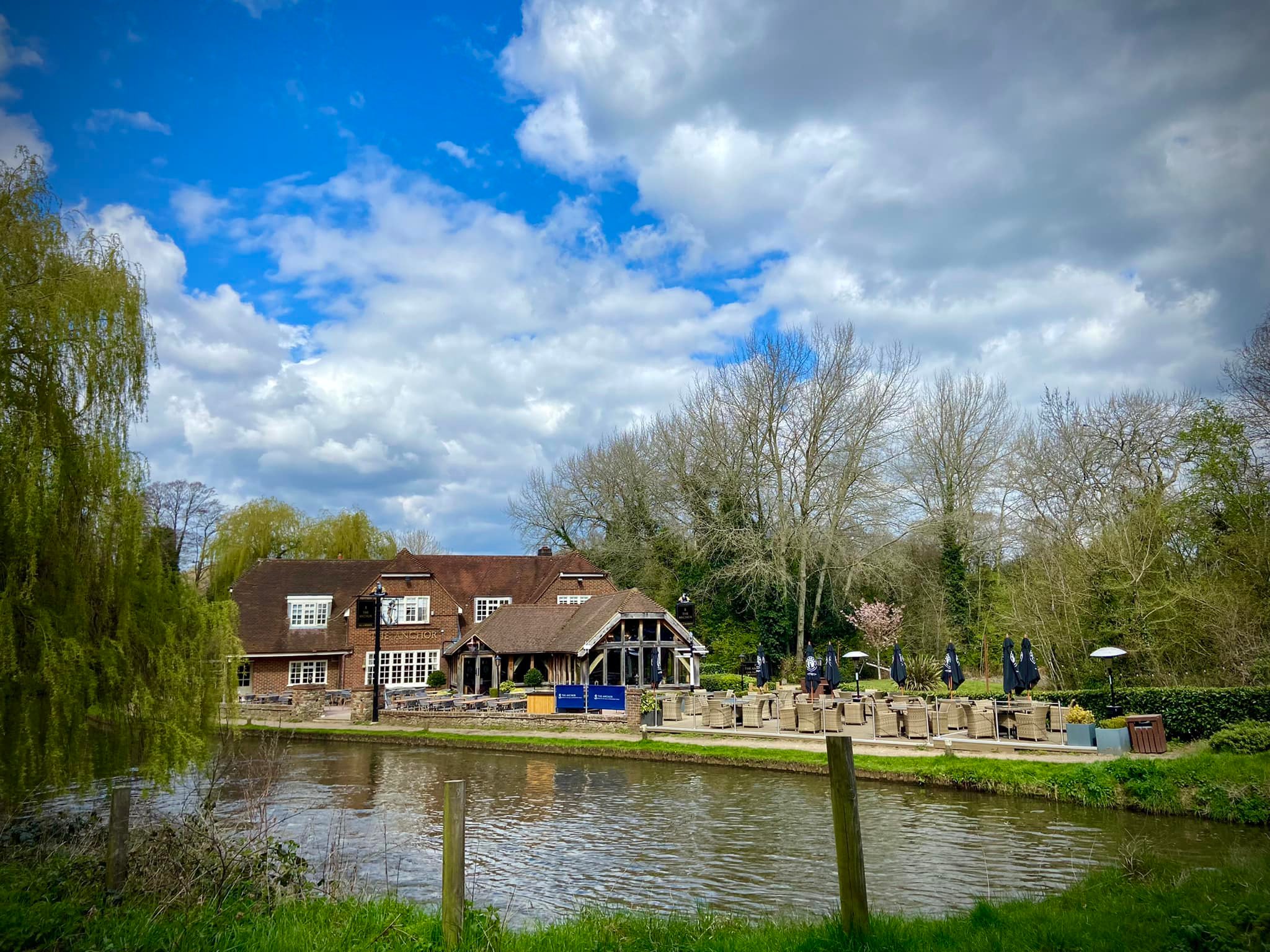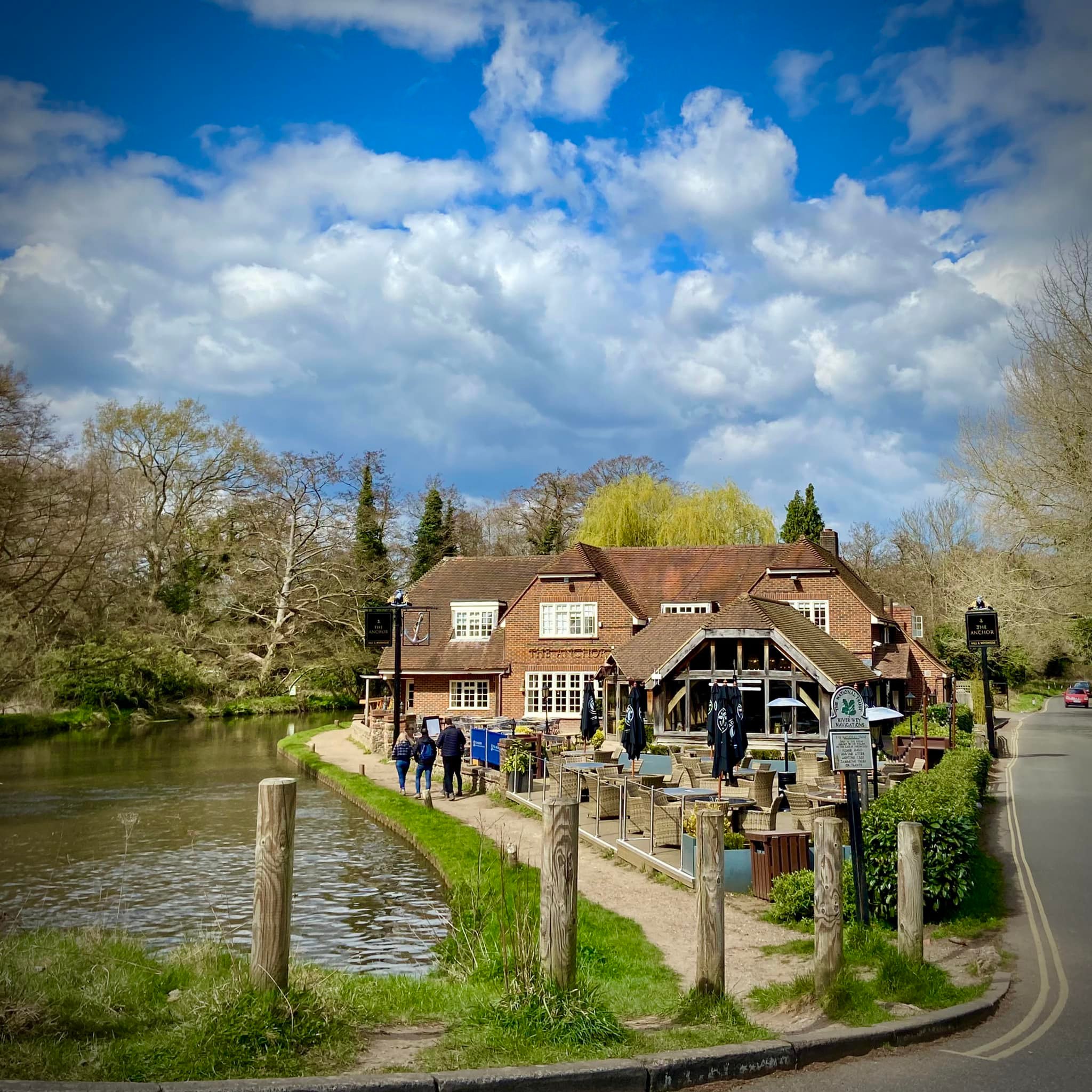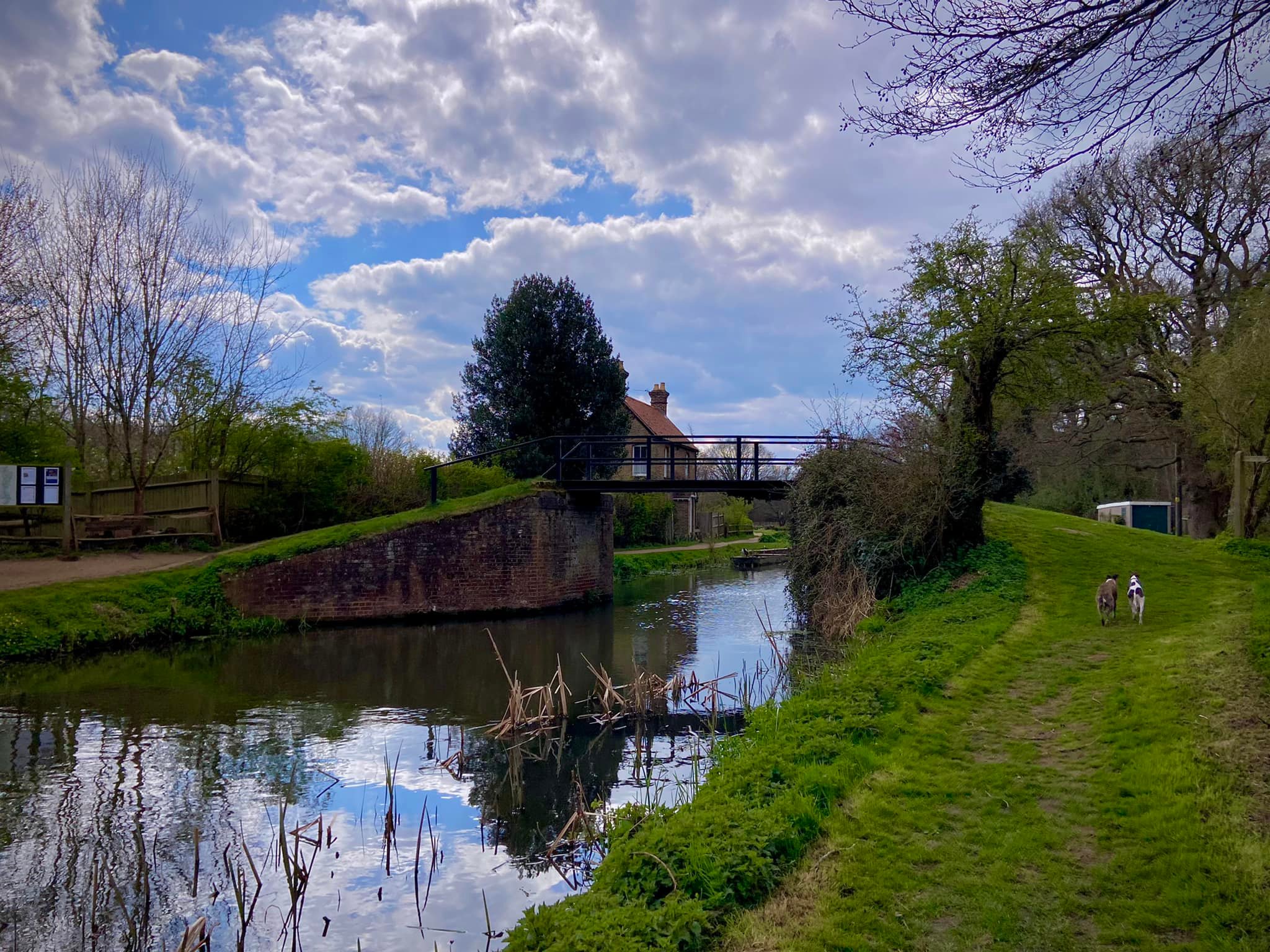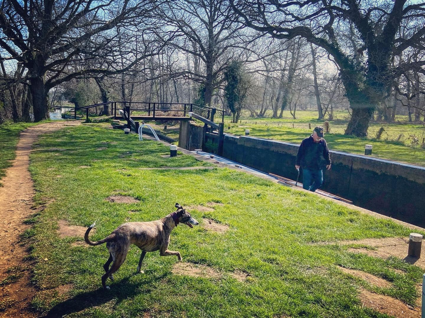 Alternatively, you could just go up the canal to The Anchor pub at Pyrford Lock and return the way you came and not bother with the golf course loop. I don’t usually like out-and-backs but when the mid-way point is a pub, that’s another matter. This is a good pub for lunch and allows dogs, so book a table for about 45 mins/an hour after you plan to set off from the car park and have a good walk there and a very lazy stroll back again. (The Anchor was refurbished in February and March 2022, opening early April).