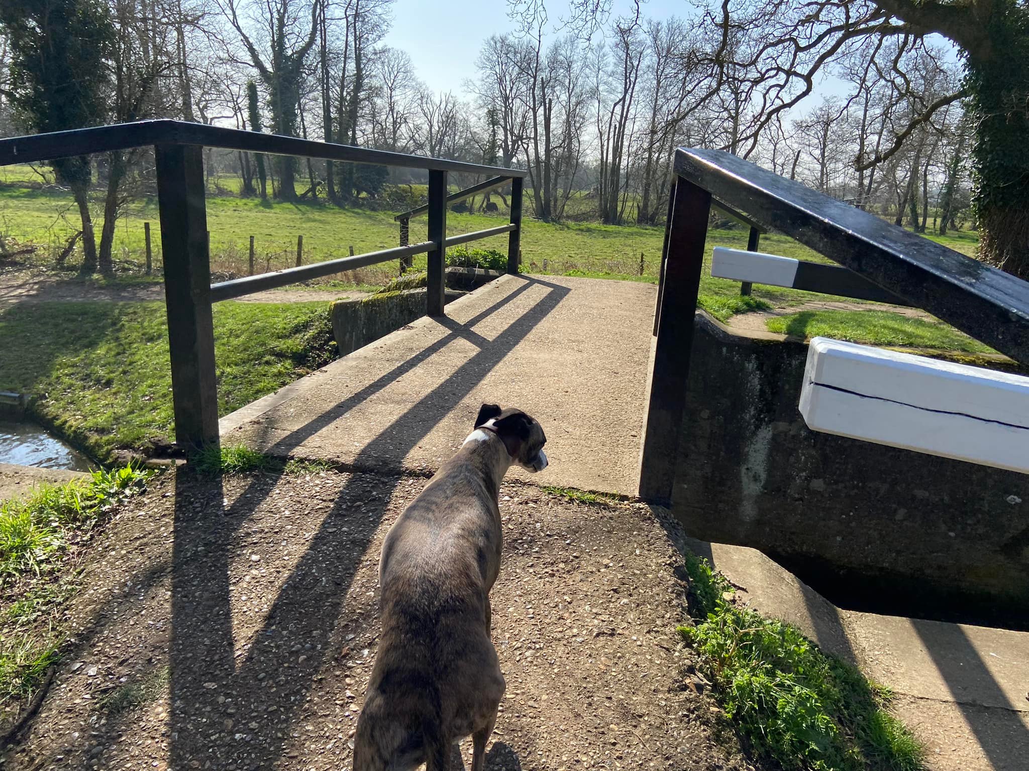 Turn right at the water (you can’t go left – there is gate marked ‘private’) and walk to the bridge across Walsham Gates, using this to cross over the canal.