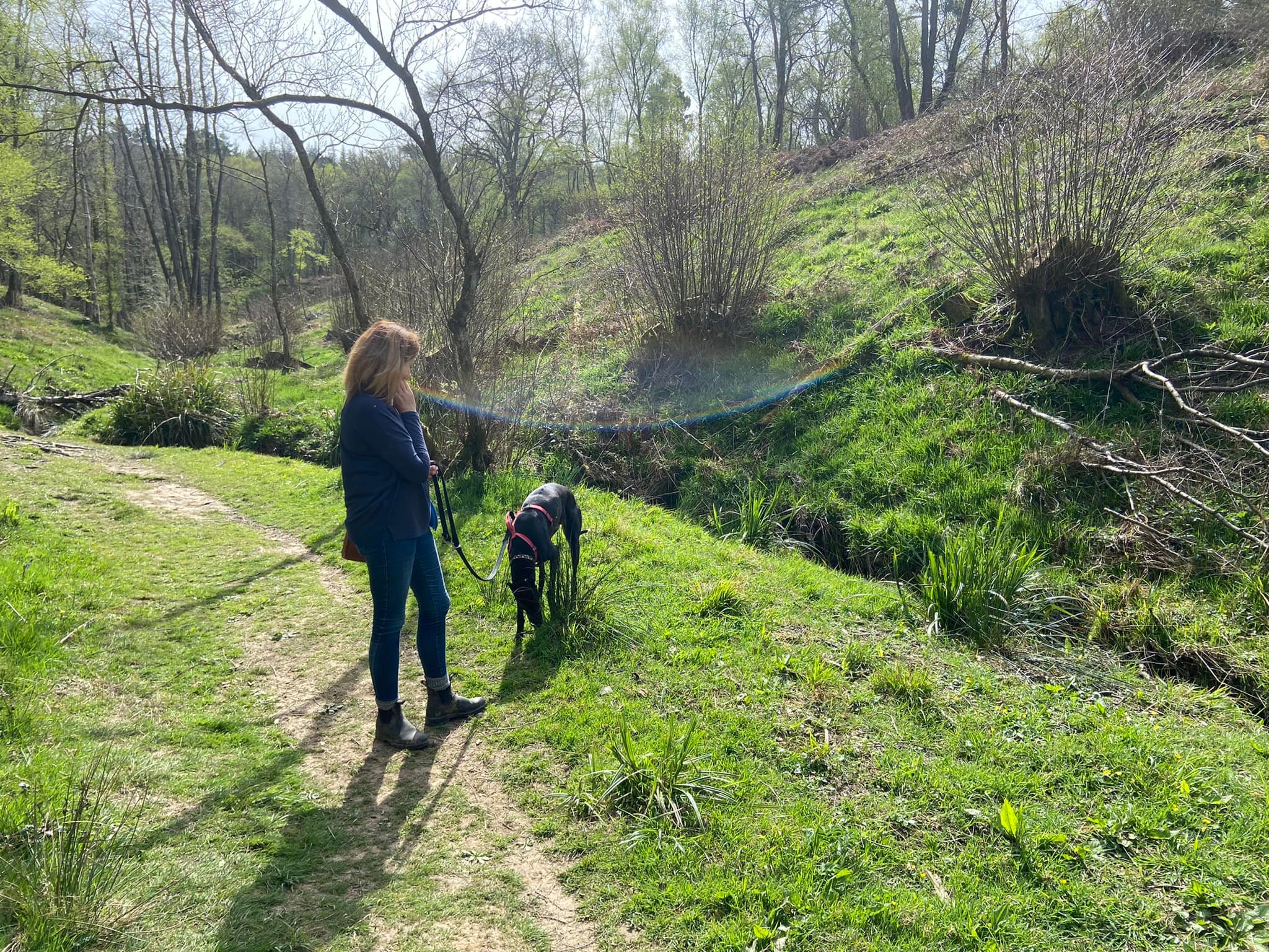 Terrain: Woodland, grass. mud and surfaced paths/tracks. Can be muddy in winter. Some slopes, but nothing too steep. Path along the stream is very uneven in places with lots of little ups and downs and tree roots.