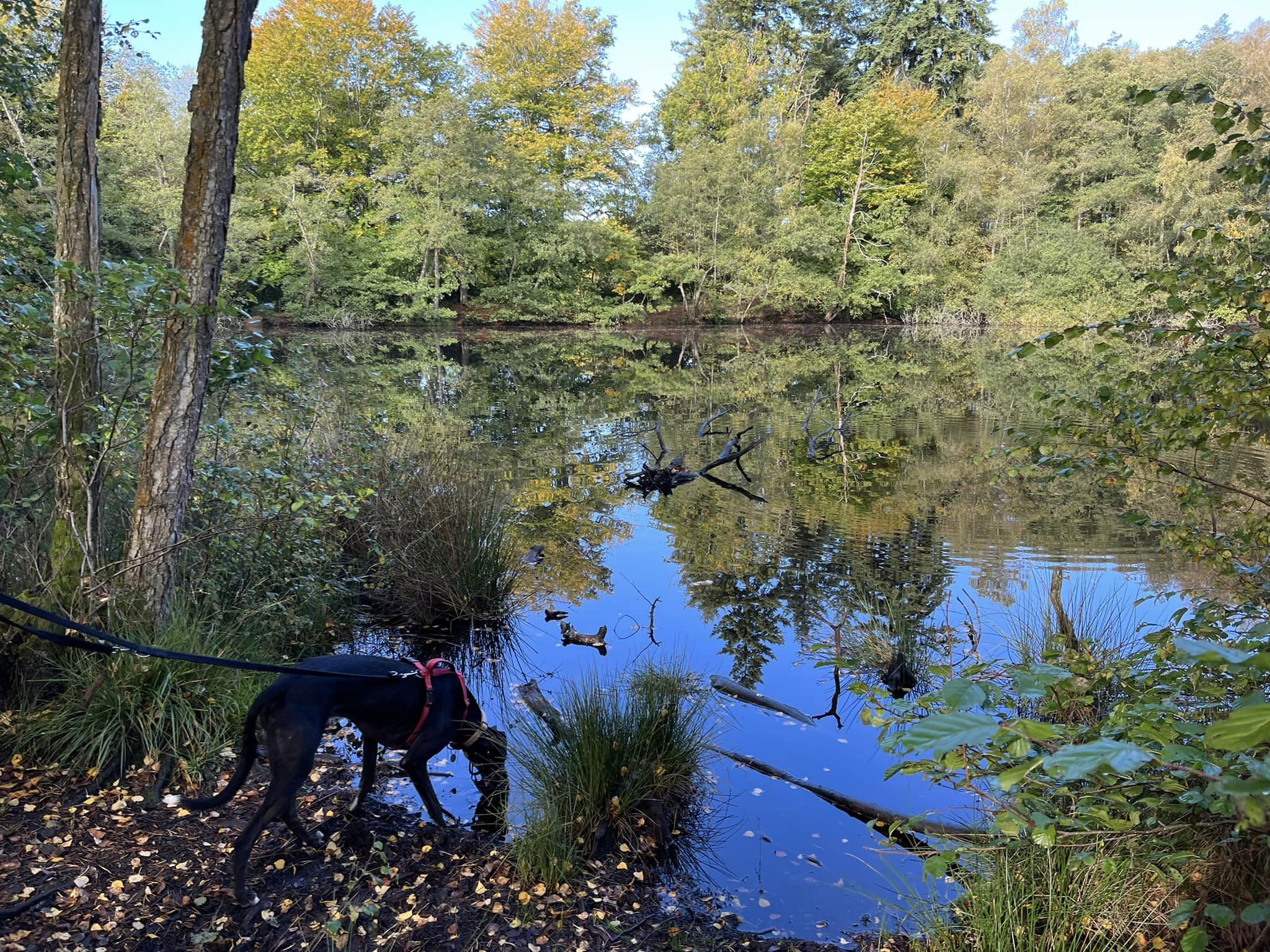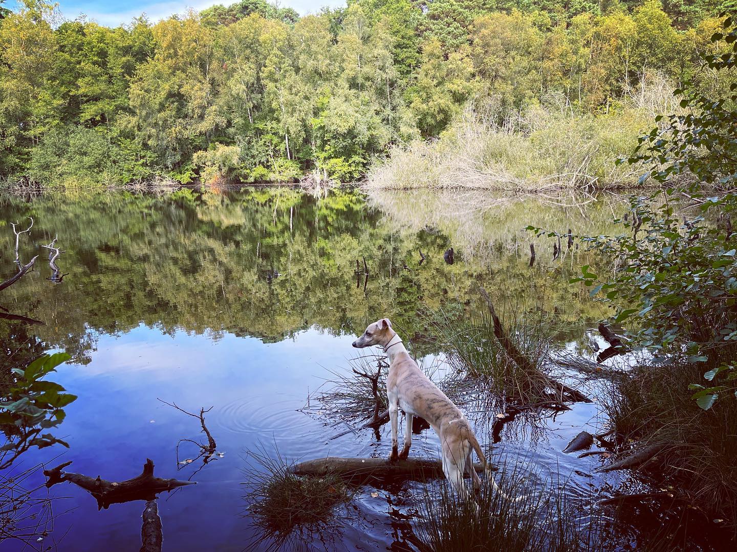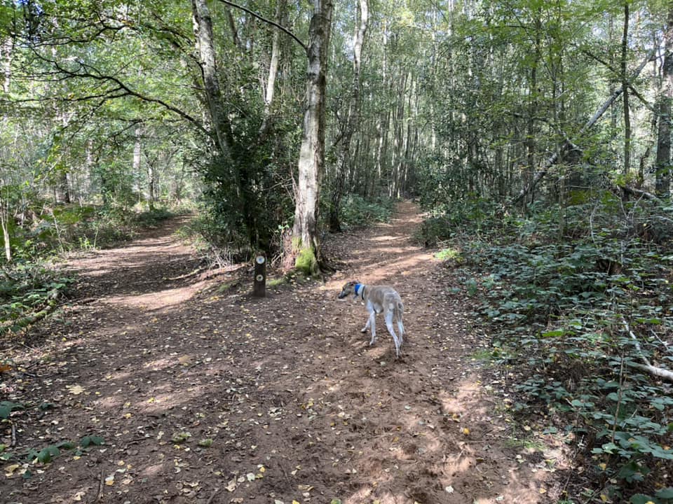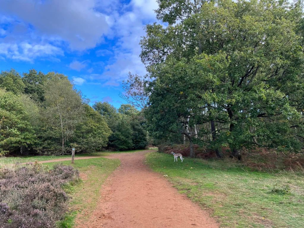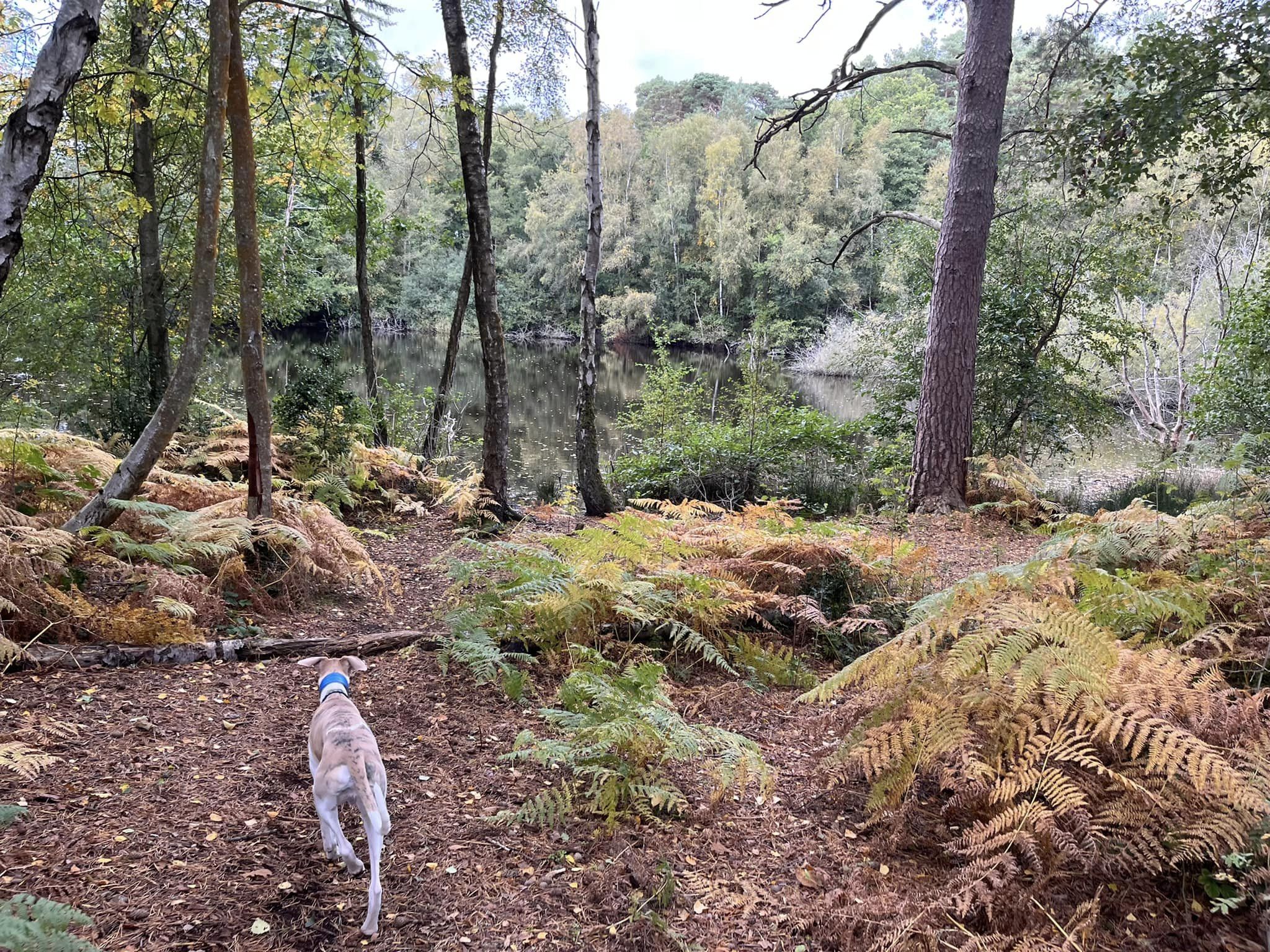 Terrain: Sandy soil underfoot for most of the route. A steep slope down at the start and another fairly steep one back up again about halfway round the walk but it isn’t quite as bad as the first one.