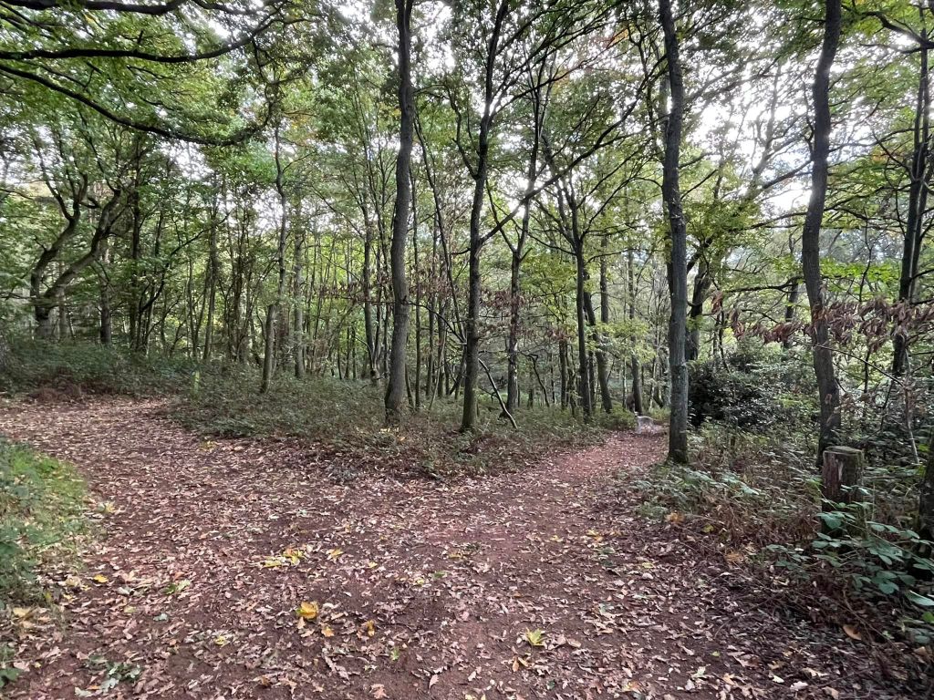 Keep on ahead through the wood and then the path goes through a clearing, where there is a path it to the left – take this. It goes downslope and at the bottom there’s a cross paths. Go straight across.