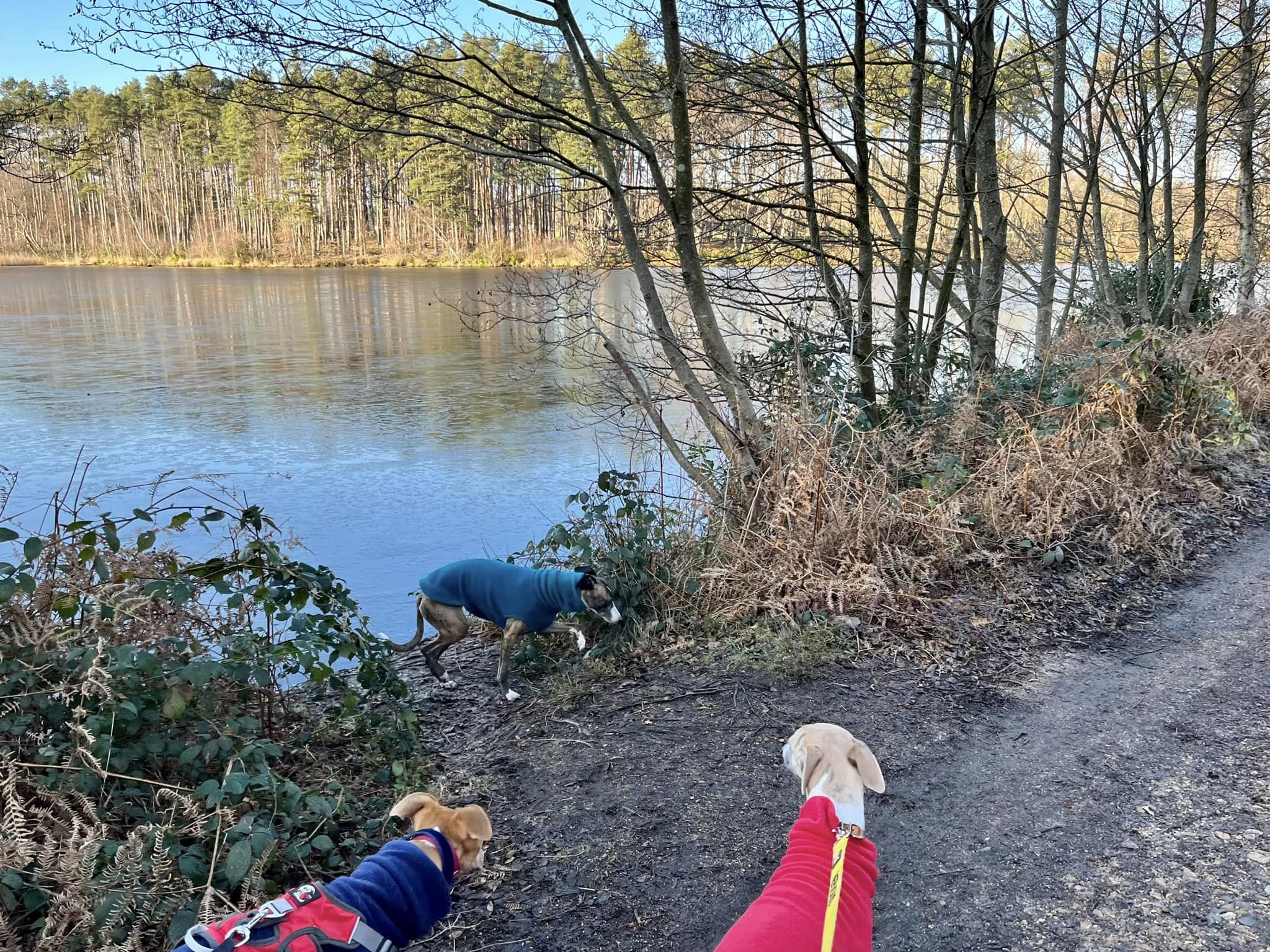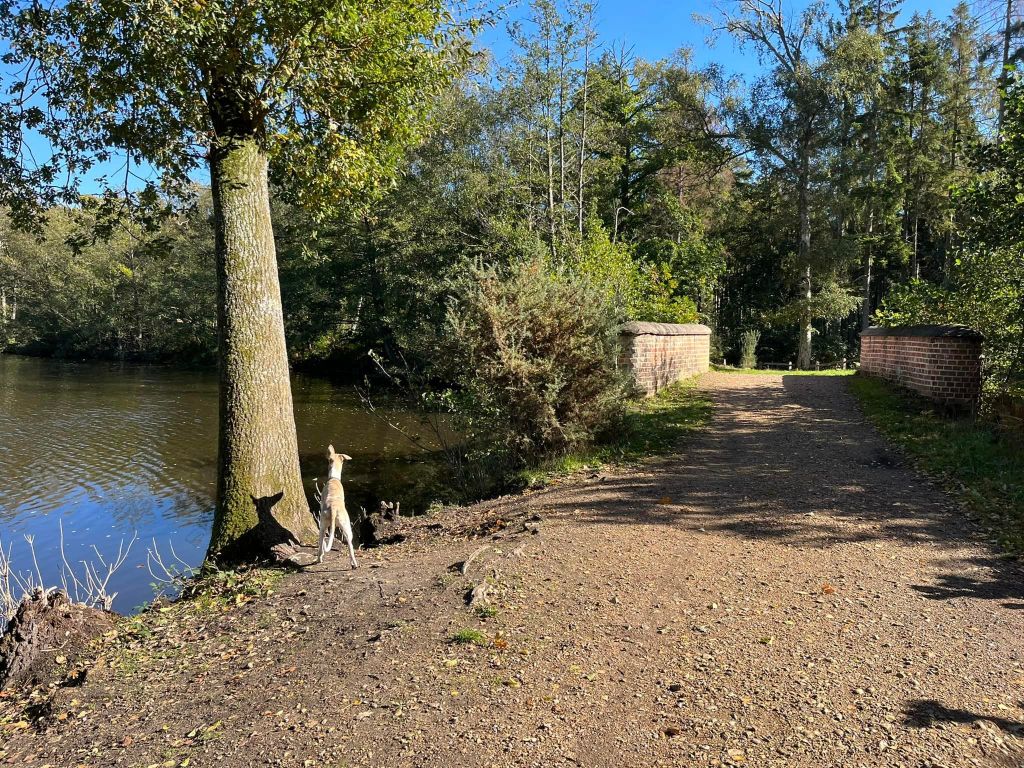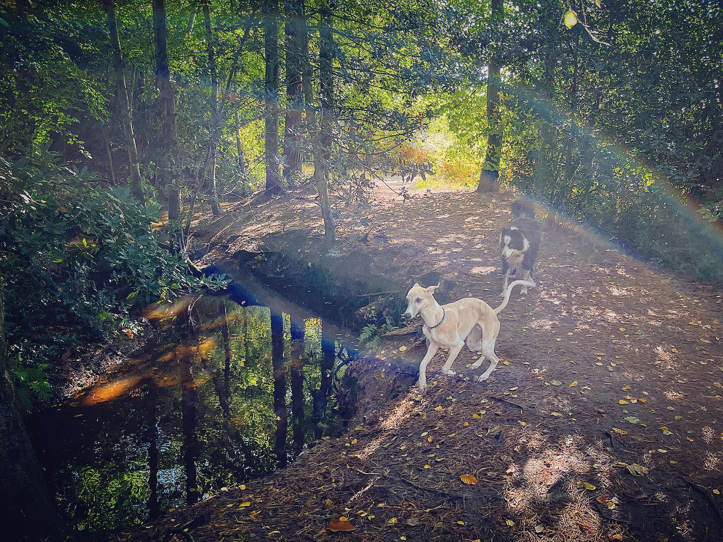 Here is a Footpath app route for Swinley Forest. Also on AllTrails. It starts in Vicarage Road behind the church, then takes you through woods alongside a little stream. The route crosses the boundary between Surrey and Berkshire and then takes you alongside Rapley Lake, before heading back on main paths. The route looks a bit like the outline of a whale – this is unintentional.