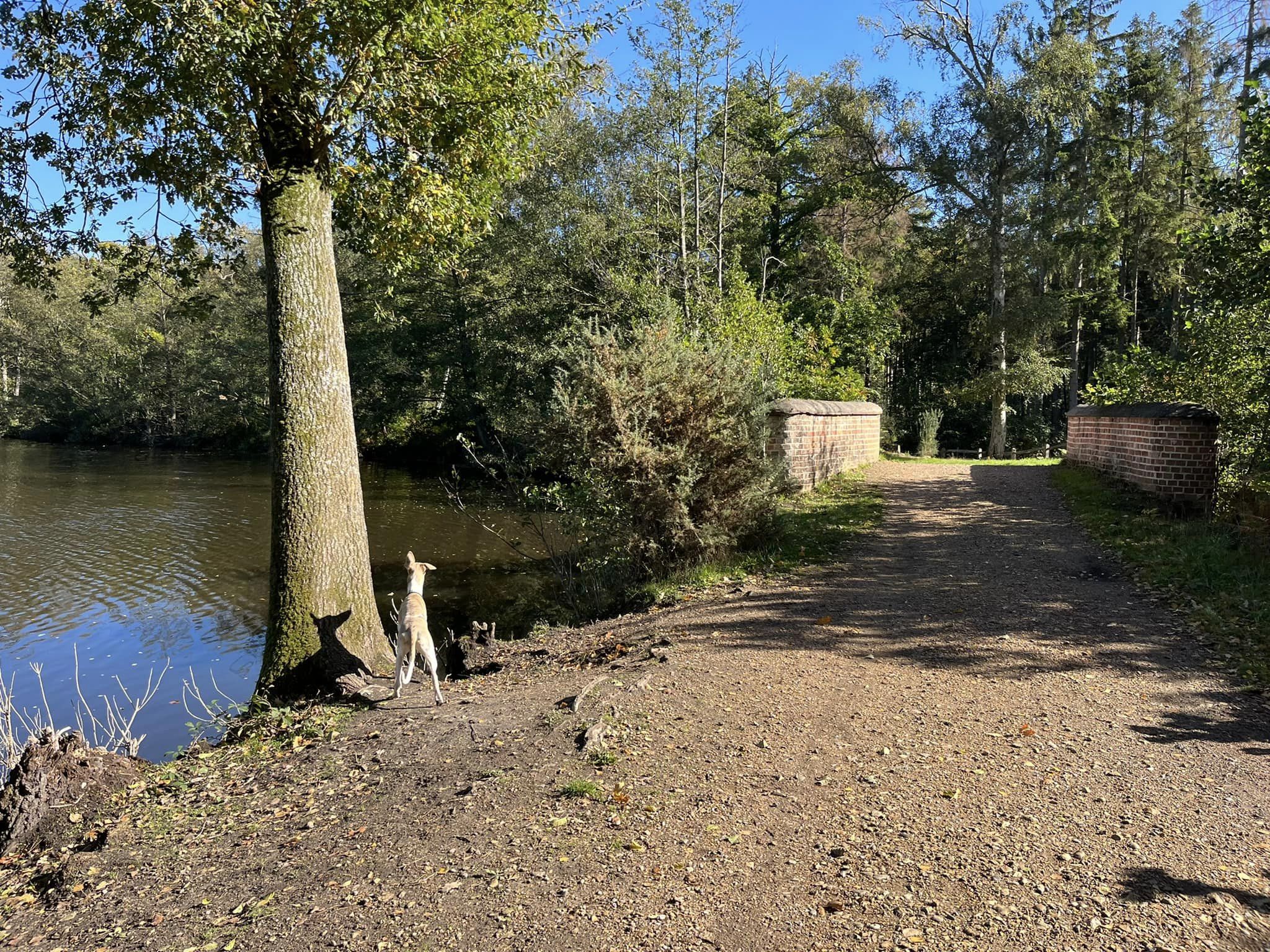 This brings you down to Rapley Lake, passing between two red brick walls, then following water’s edge.