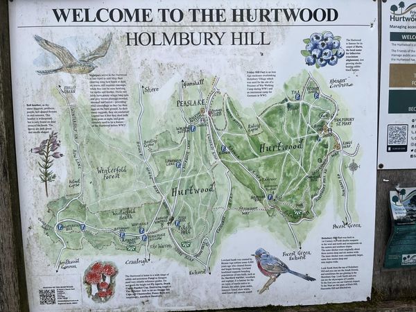 Holmbury Hill is part of the Hurtwood, a privately owned woodland to which the public has had access since 1926, as granted by Reginald Bray, the Lord of the Manor of Shere. The Hurtwood got its name from its carpet of Hurts, the local name for billberries (blackberries.) The area is managed by the Friends of the Hurtwood, a registered charity.