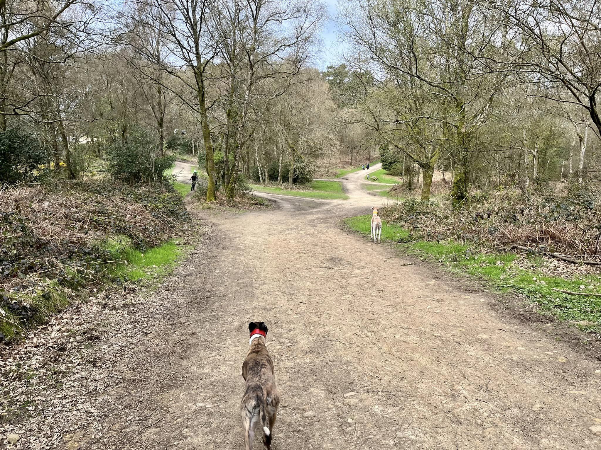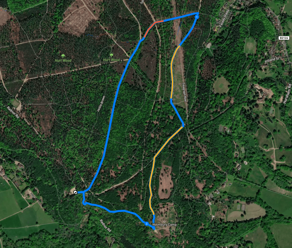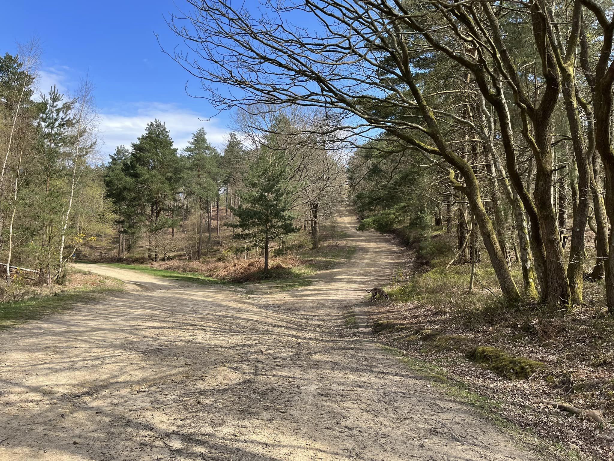Terrain: Wide, generally hard but sandy paths. The Hurtwood is a mainly wooded area but these paths are so wide they offer very little shelter – I recommend you avoid this one on warmer days. This is an undulating walk with slopes up and down. There is one steep uphill.