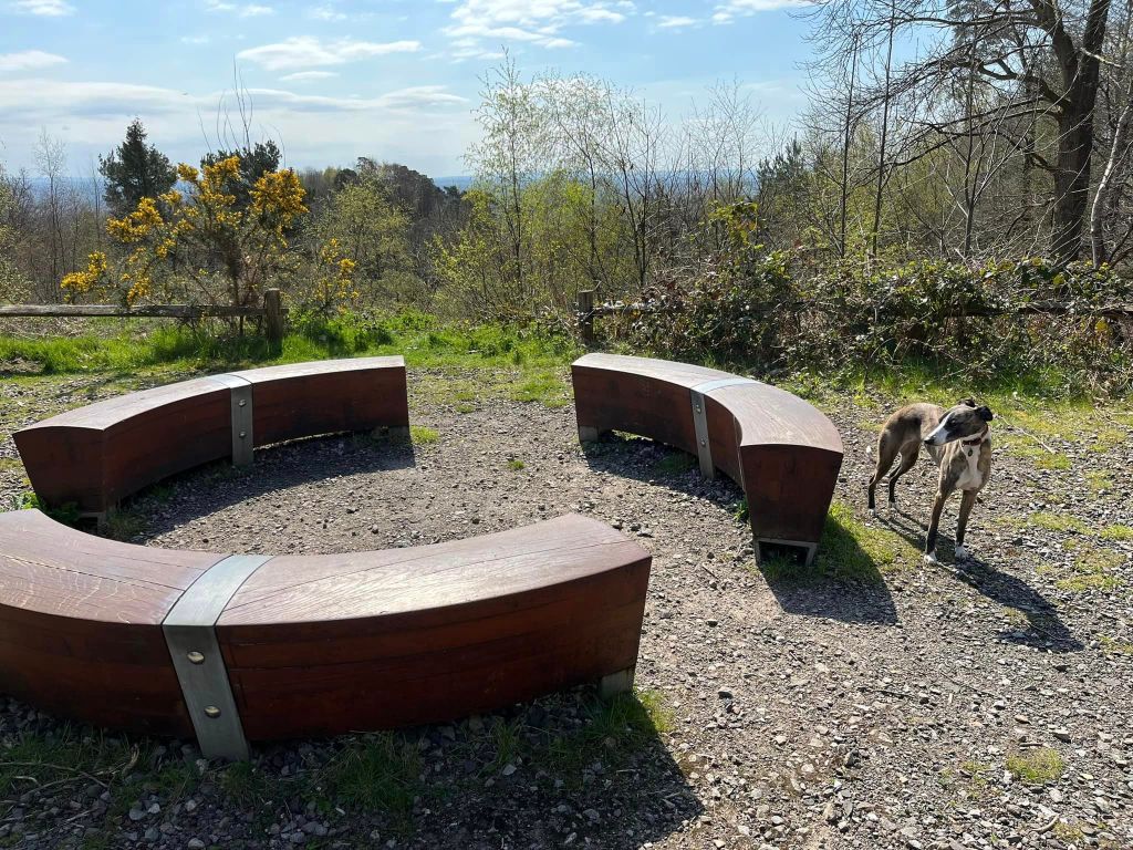 Here is a rather rugged Footpath app route around The Hurtwood at the top of Holmbury Hill. Also on AllTrails. This loop takes in the viewpoint and the “Converse” bench, part of the Surrey Hills Arts “Inspiring Views” project.