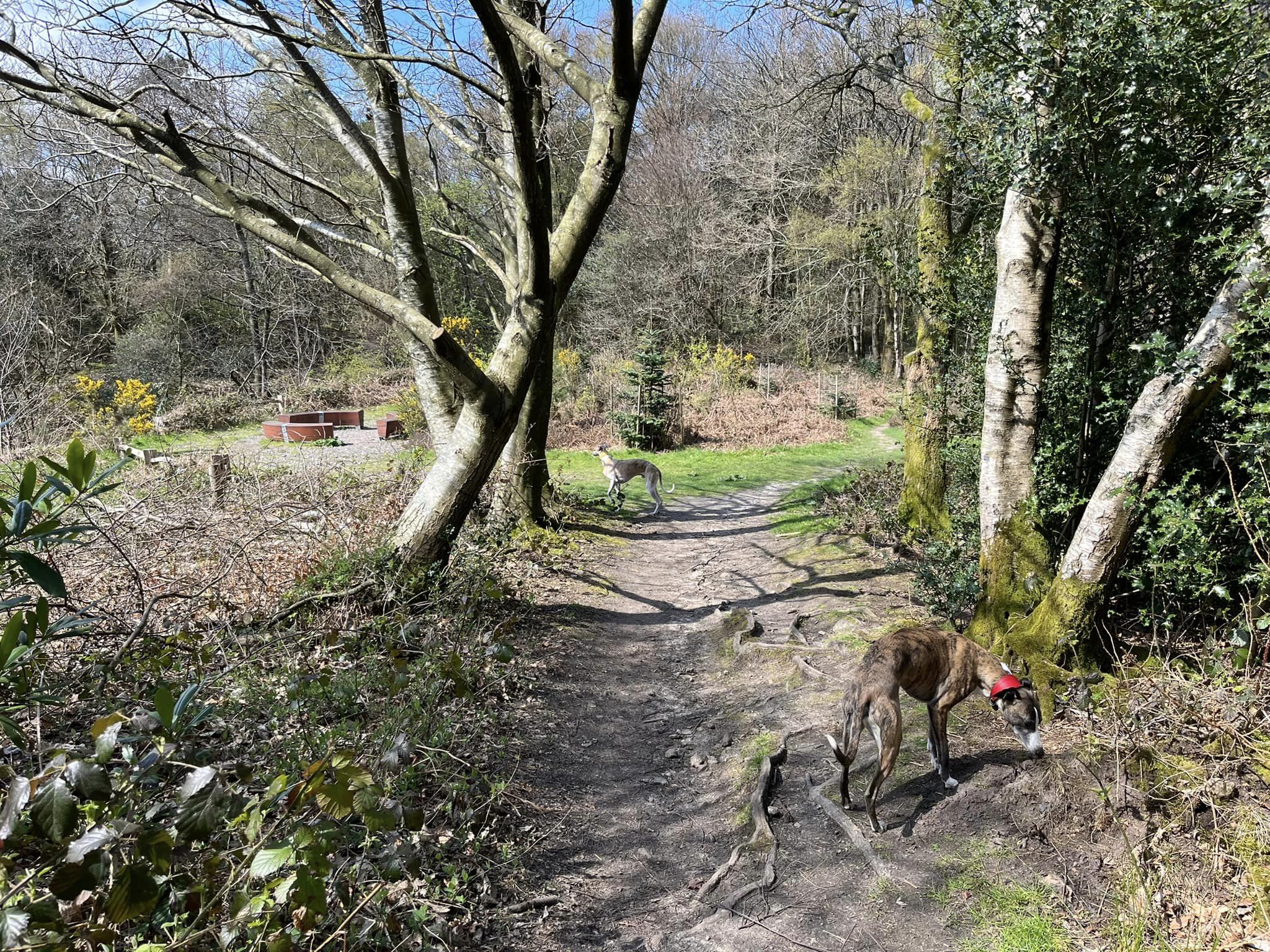 When you’re done looking at the benches, stand with the view immediately behind you. Follow the small path that leads away from the benches and view – you’ll be able to see the main path ahead. Head towards it and the car park will come into view to the left – you can go down to the main path and turn left, but there is a small cut through path on the left before you reach that main path so you can take this back to the cars.