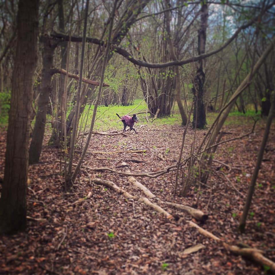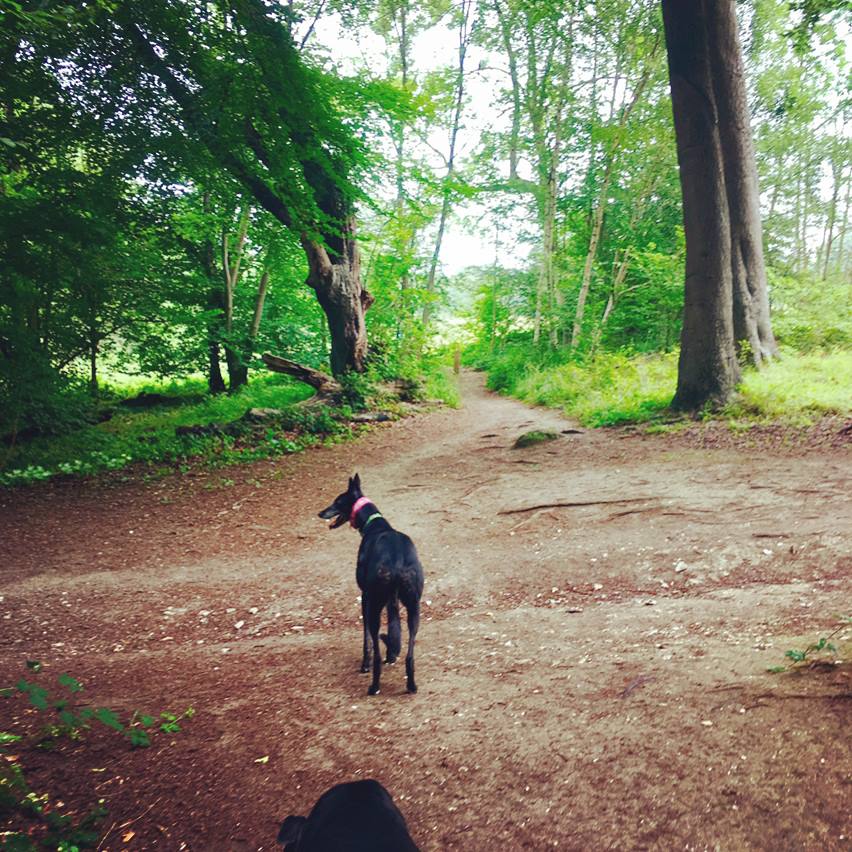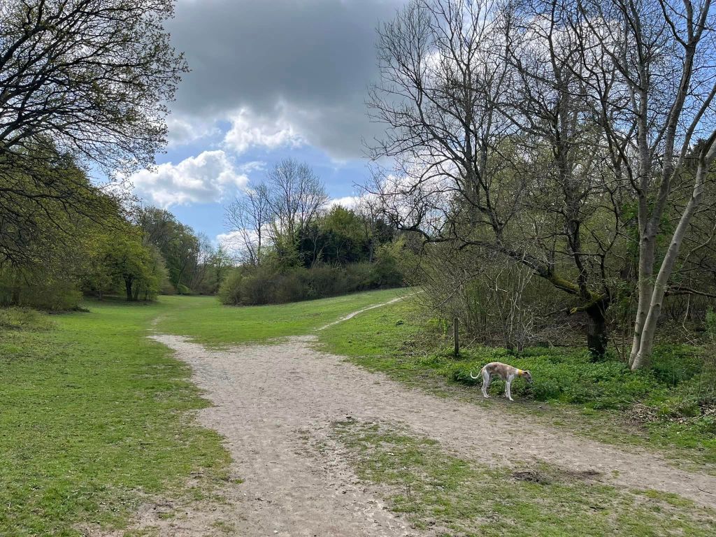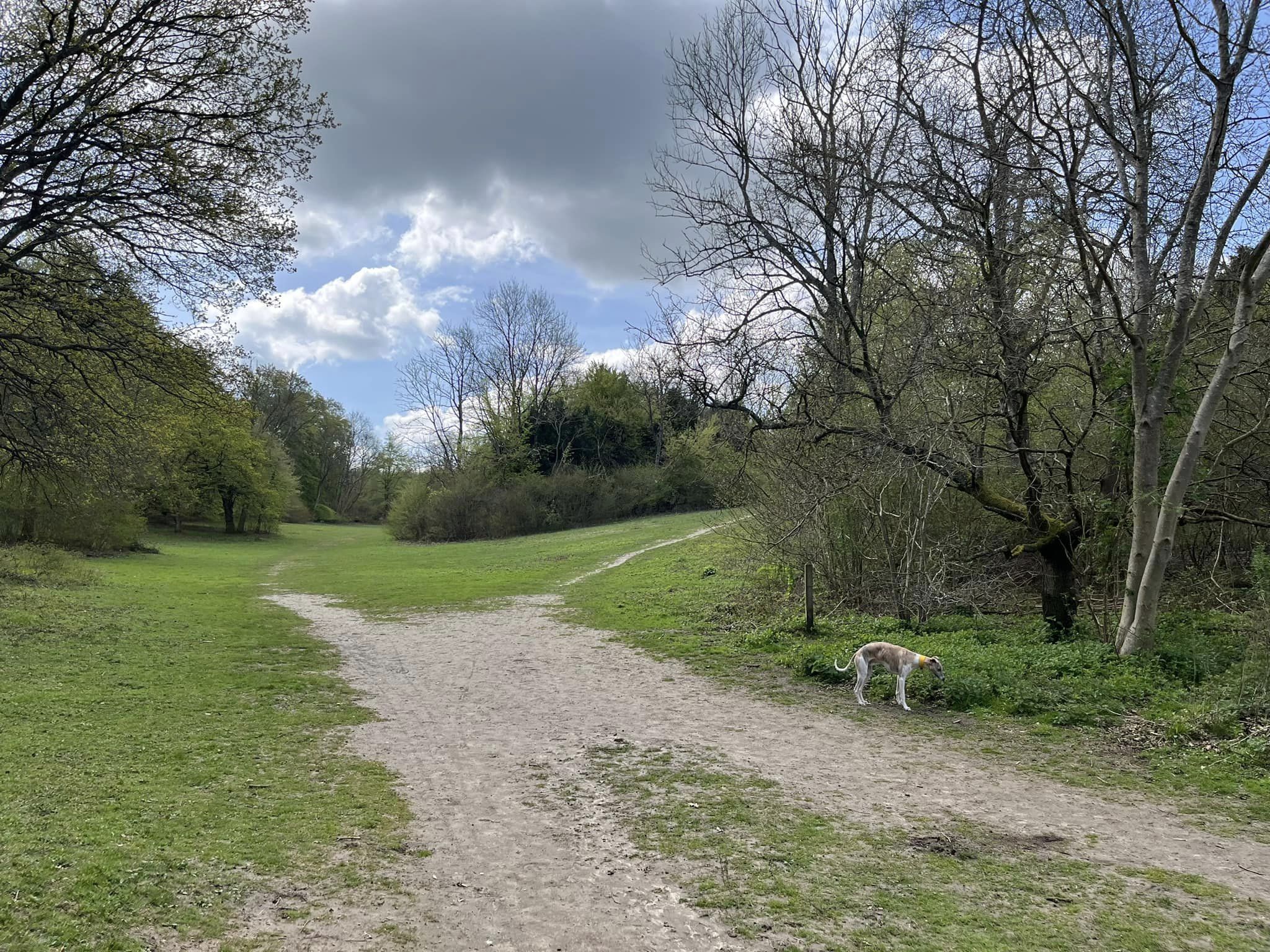 This path weaves through the wood, with an open field to your right. Just stay on the path through the trees. After some way, you’ll notice an open areas through the trees to your left too. Again, keep on going.