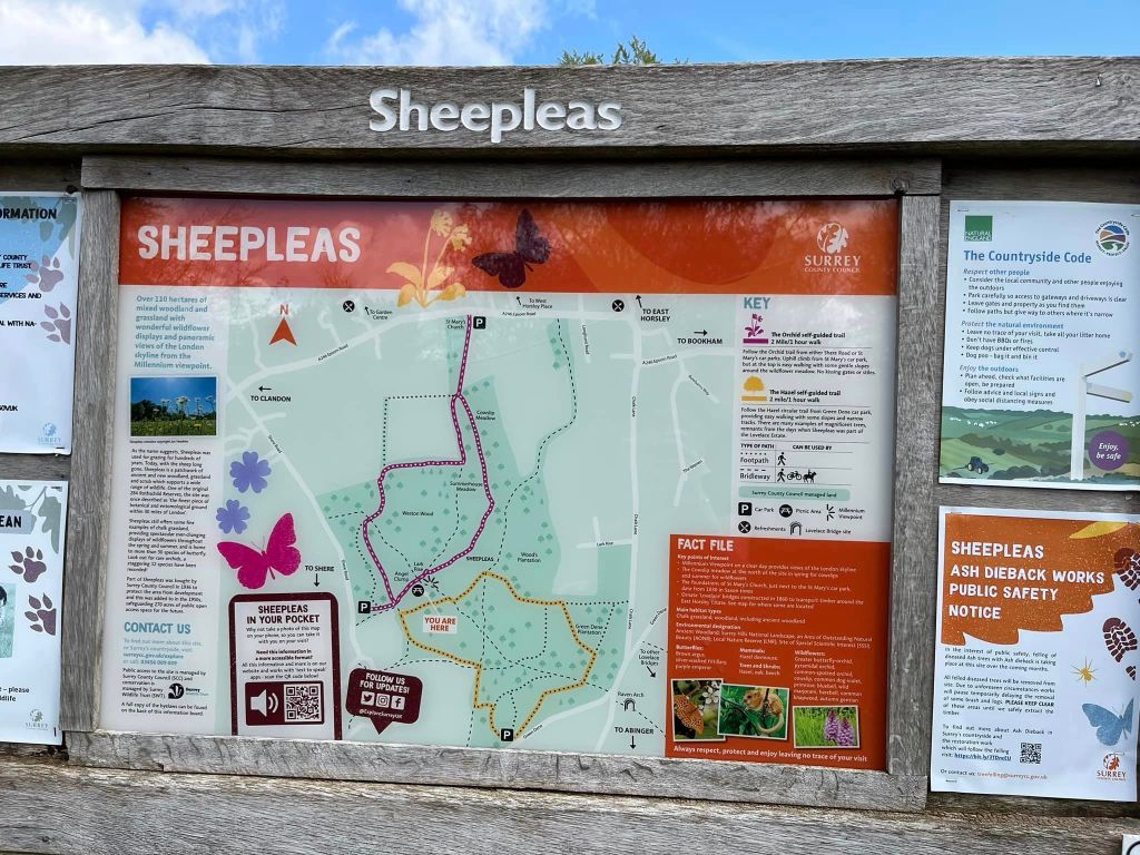 There are three car parks for the Sheepleas: Shere Road car park, St Mary’s Church car park and Green Dene car park, which is the one that the walk on this page starts at.
