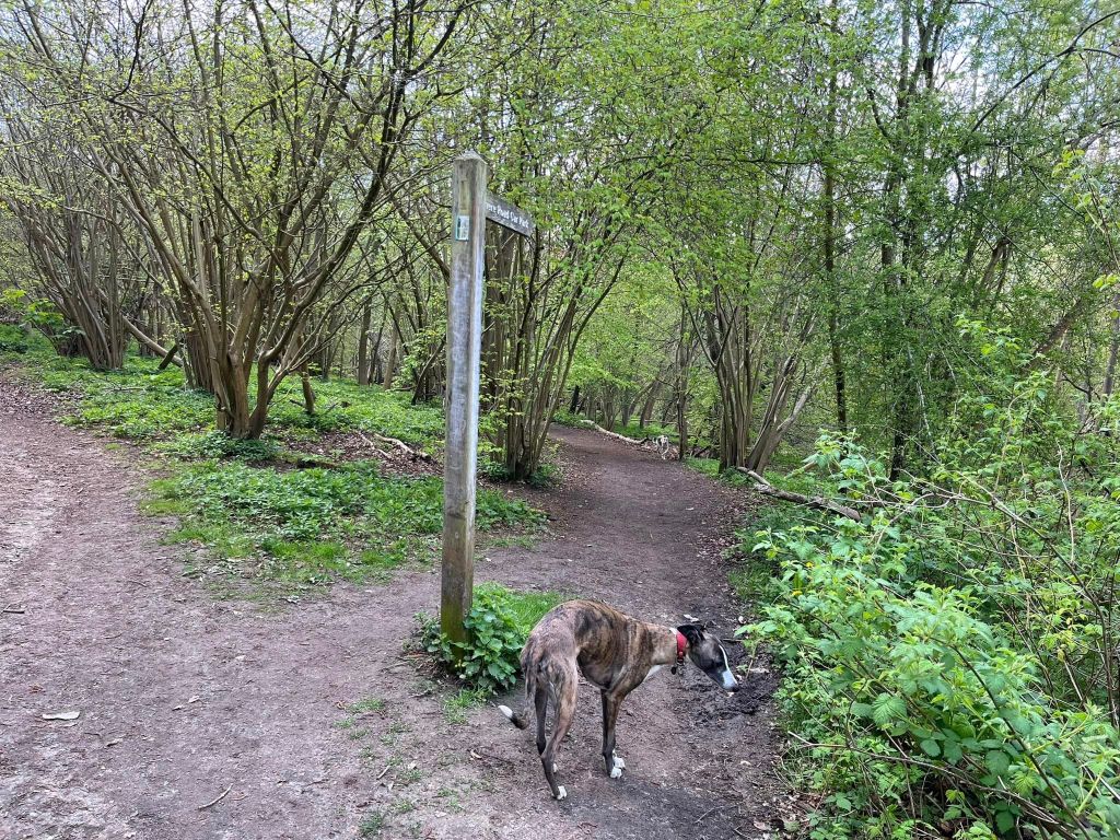 At the cross paths with the marker post just after the fallen tree, turn right off Yew Tree walk (this is where you joined the path at the beginning). Take this little path downslope and retrace your steps to the car park: go straight over at the small cross paths and this final path bends to the right and then it’s pretty much straight – aside from a few wiggles – back to the cars.