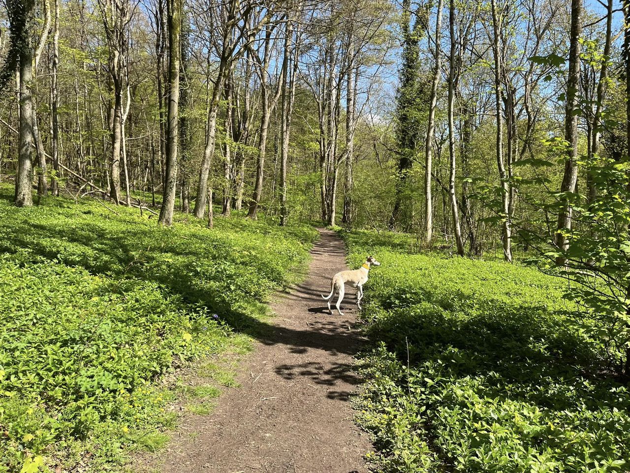 Terrain: The paths range from small mud tracks to rocky uneven surfaces. There are some slopes, including one quite steep one up to the viewpoint – the rest aren’t so bad. You’ll want decent footwear all year round as it’s quite rugged, and it can be muddy in the winter. During late April/early May, there are bluebells in the woods right by the car park.