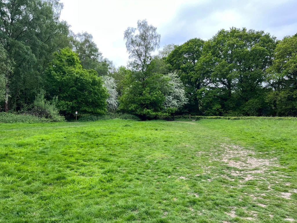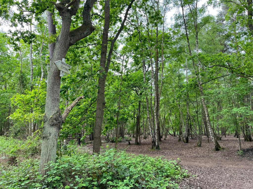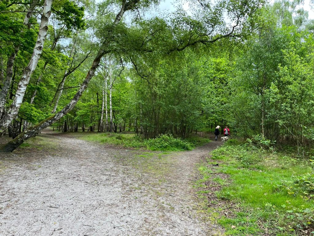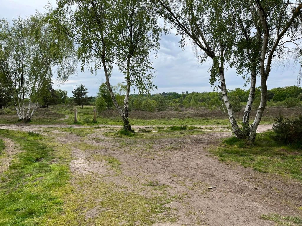 The main car parks are on Salt Box Road, but the route on this site goes from the car park on Burdenshott Road. You’re supposed to park in the small Worplesdon commons car park here (which means going through the black vehicle gate) but it’s right alongside the much larger car park for the Jolly Farmer pub so people tend to park in that.