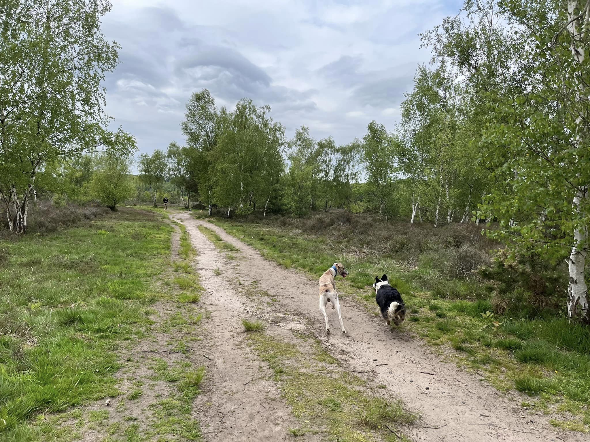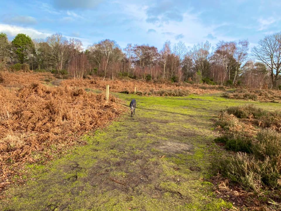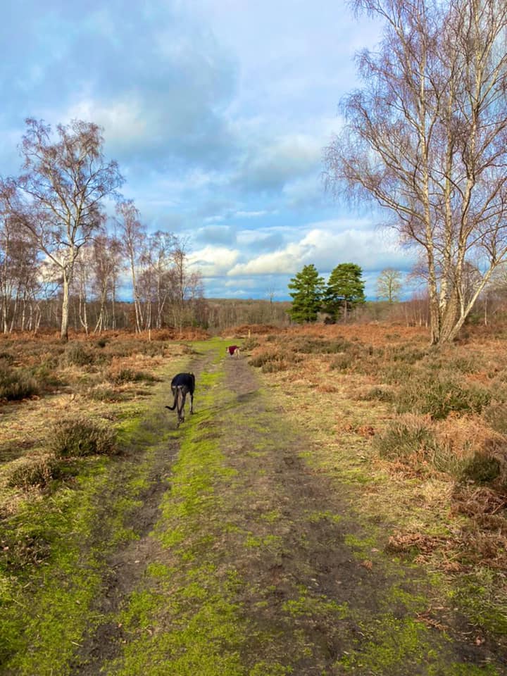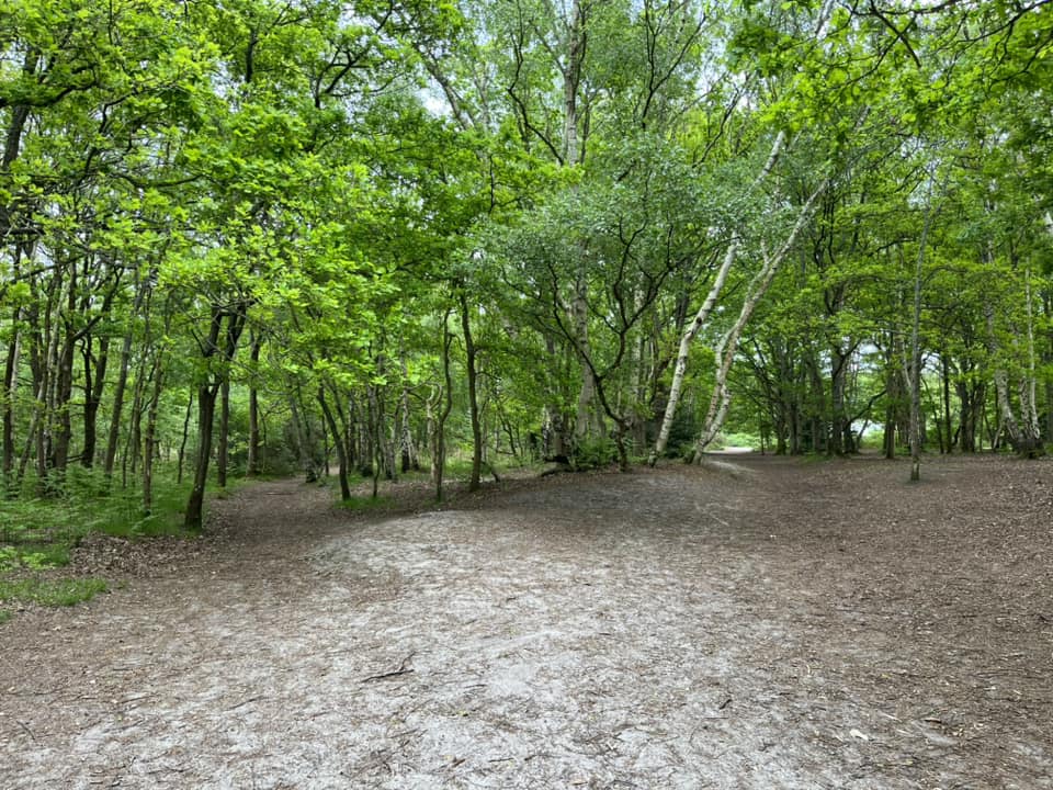 The main car parks are on Salt Box Road, but the route on this site goes from the car park on Burdenshott Road. You’re supposed to park in the small Worplesdon commons car park here (which means going through the black vehicle gate) but it’s right alongside the much larger car park for the Jolly Farmer pub so people tend to park in that.