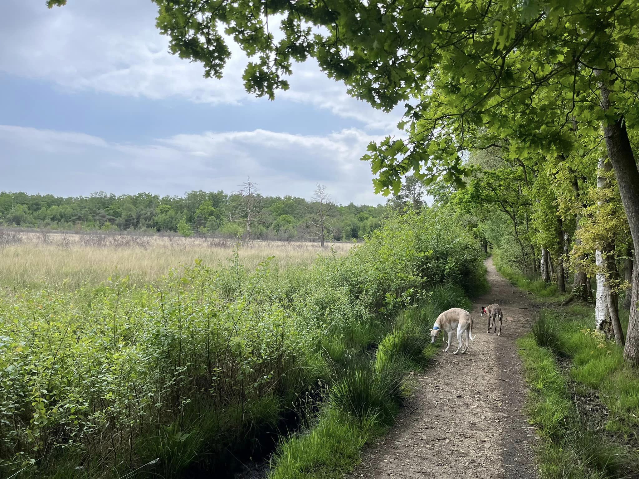 This is a long, largely straight path that after a while becomes less sheltered, with the open heath of Whitmoor Common over to your left.