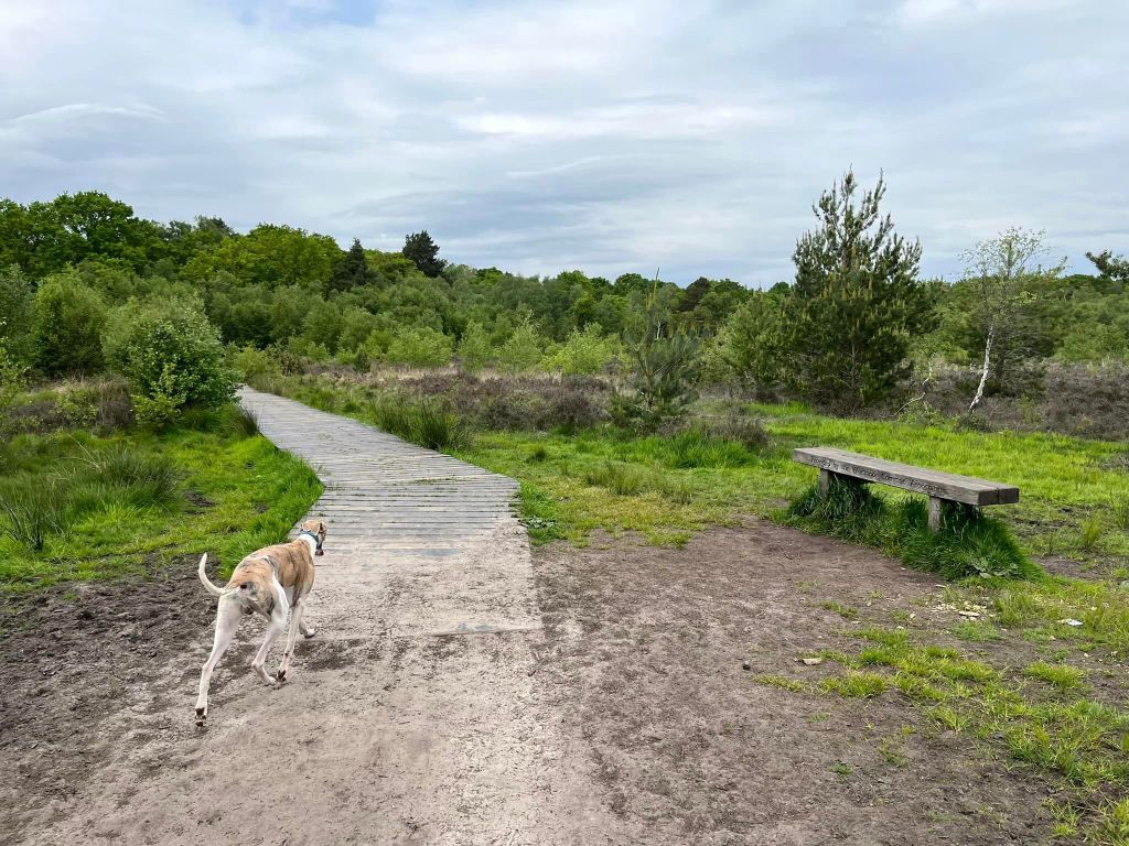 Here is a Footpath app route from the car park of the Jolly Farmer pub at Worplesdon. Also on AllTrails. It takes you around the edge of Whitmoor Common, passing the interior pond, then back via the main boardwalk.