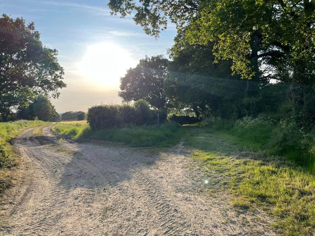This path is quite narrow and you’ll pass a finger post (on the left.) As you pass through the trees, it can be very muddy in the wetter months, so you may want to cut to the left into the field that runs parallel and walk along the edge of that instead for a bit. (If you do, be sure to cut back to the footpath at the end of the field!)