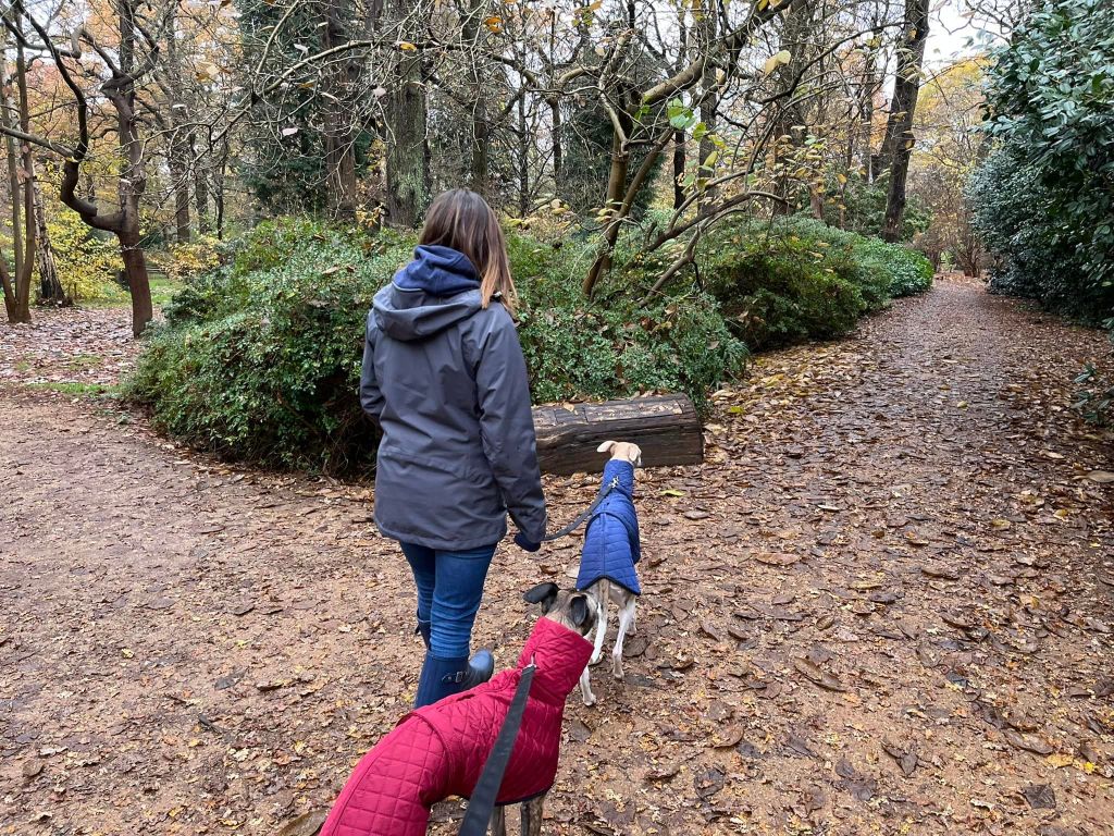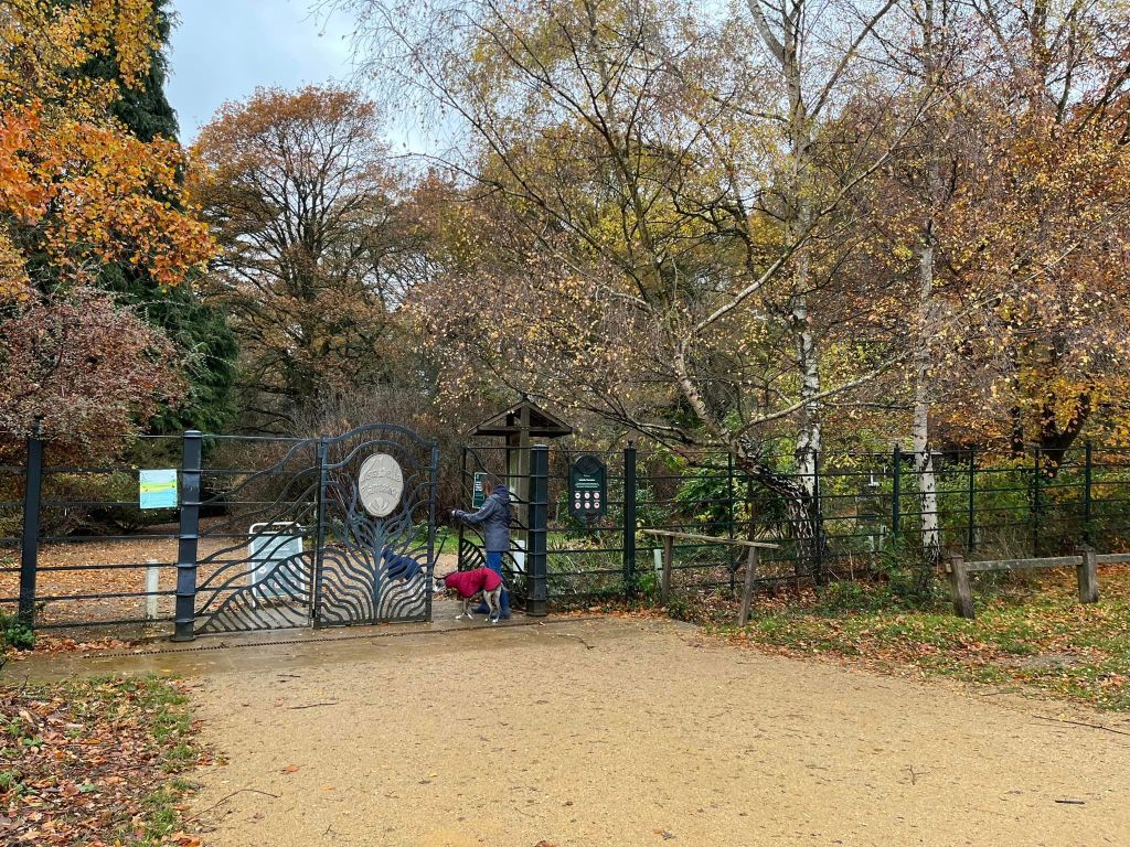 At the corner (where there’s a bin on the right), continue straight ahead on the surfaced path, which brings you down to the Isabella Plantation – go through the gate into the plantation. It’s wise to keep your dog on a lead at all times in Richmond Park because of the roads and the deer, but they must be on lead at all times in here.