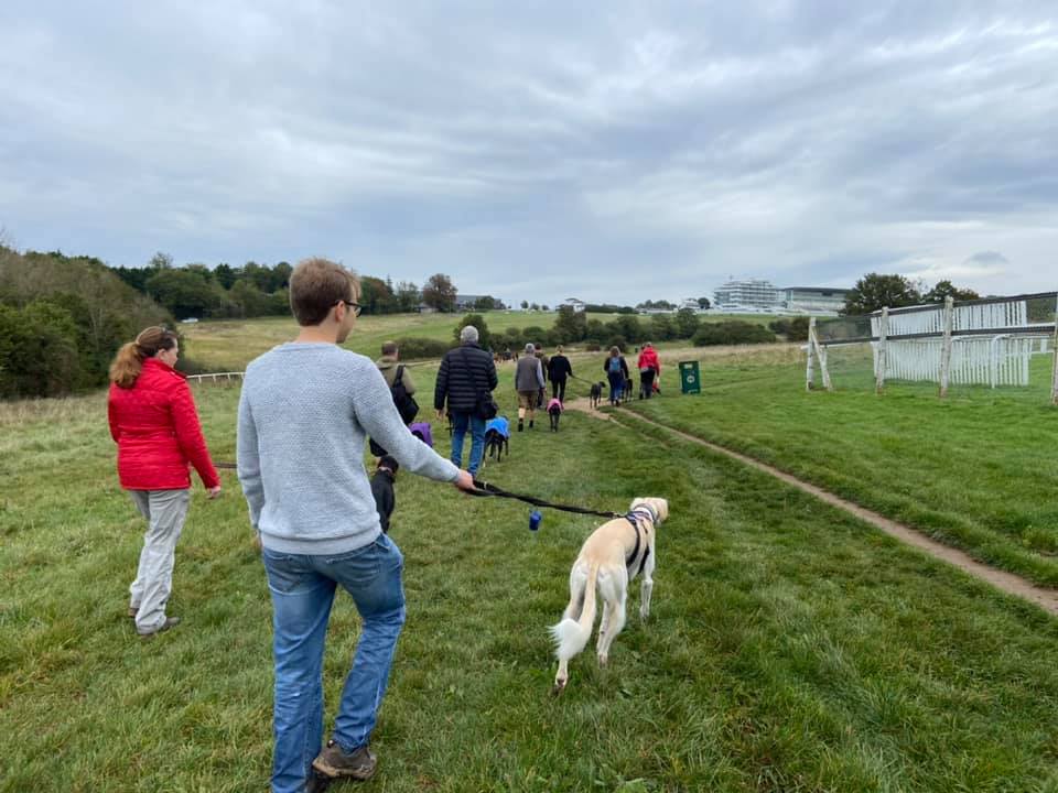 Here is a Footpath app route from the 7th Furlong car park. Also on AllTrails. It skirts the edge of Epsom Downs and takes you through the racecourse, including along front of the Queen Elizabeth II stand and the Grandstand.