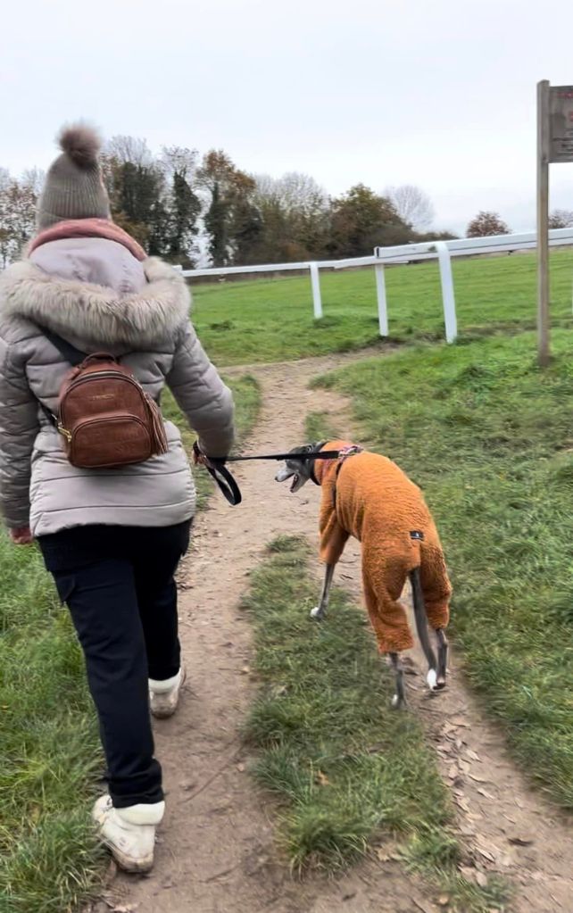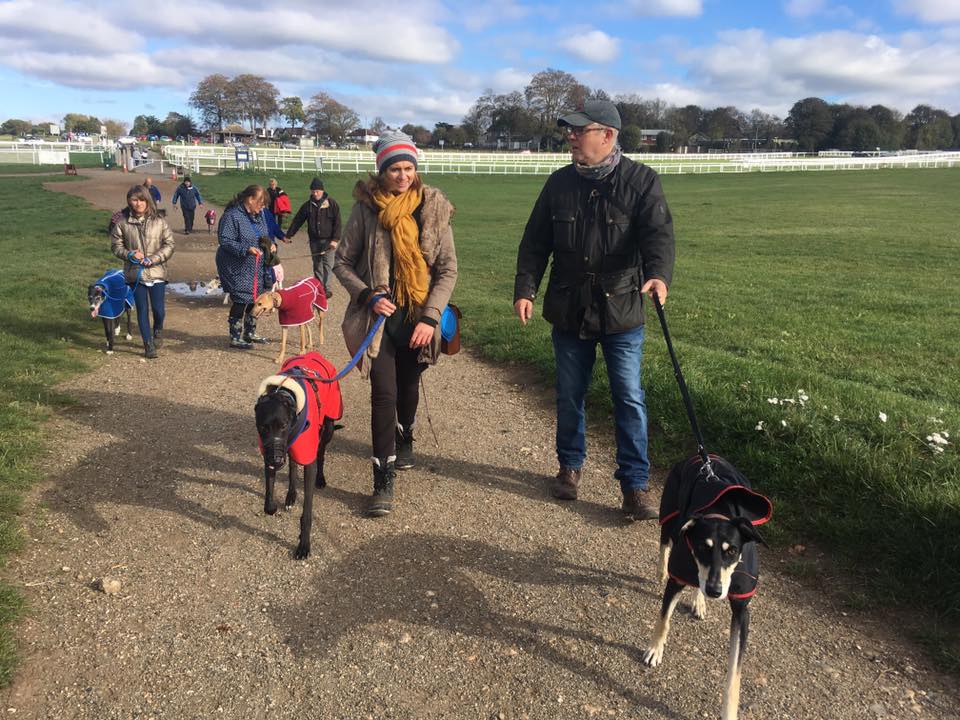 When you get to the main gravel/sandy perimeter path, turn right and keep the trees to your left. At the junction, go straight across towards the stands and turn right at the next T-junction to walk parallel with the racecourse, which is on your left flanked by white barriers.